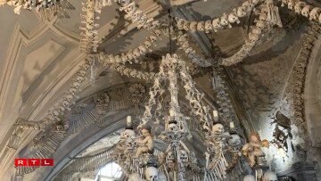 The Sedlec Ossuary stands out as a particularly well-known chapel in which thousands of bone adorned skulls hang.