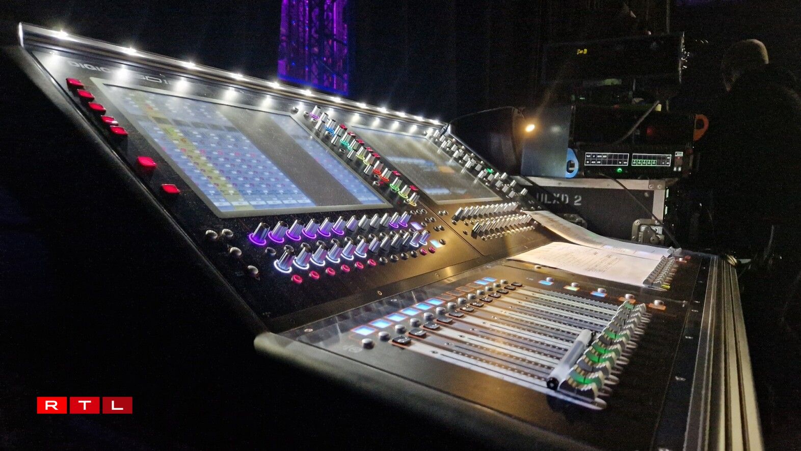 In total, “there are around 150 technicians here, including some thirty from Rockhal”, explains Tom Weber, head of the technical department. He takes us backstage and explains the immense machinery that has been in place since last Saturday: “To light this 120 m2 stage, we have installed 250 remotely-controlled robotic spotlights, five lines of screens on the floor and screens all around the stage to create effects of fire, sparks, and so on. 16 cameras will film the stage”.