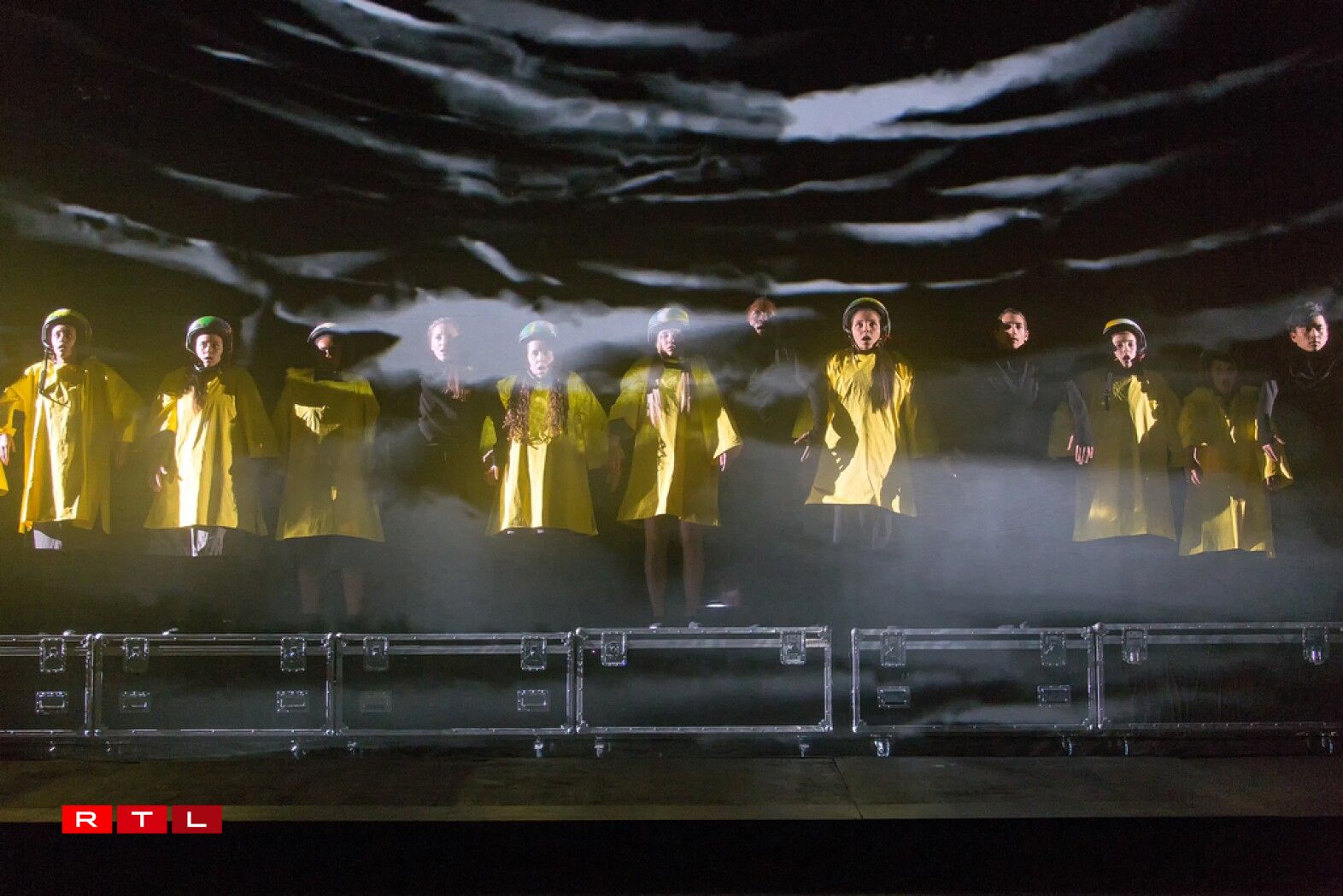 In the 19th century, Luxembourg was known as the “land of wolves”, a fact that is reflected in “Apparition”. The 14 young singers, all teens and pre-teens, are led across the stage by a holographic wolf. For choreographer Greco, there is a little bit of wolf energy trapped in every child.
