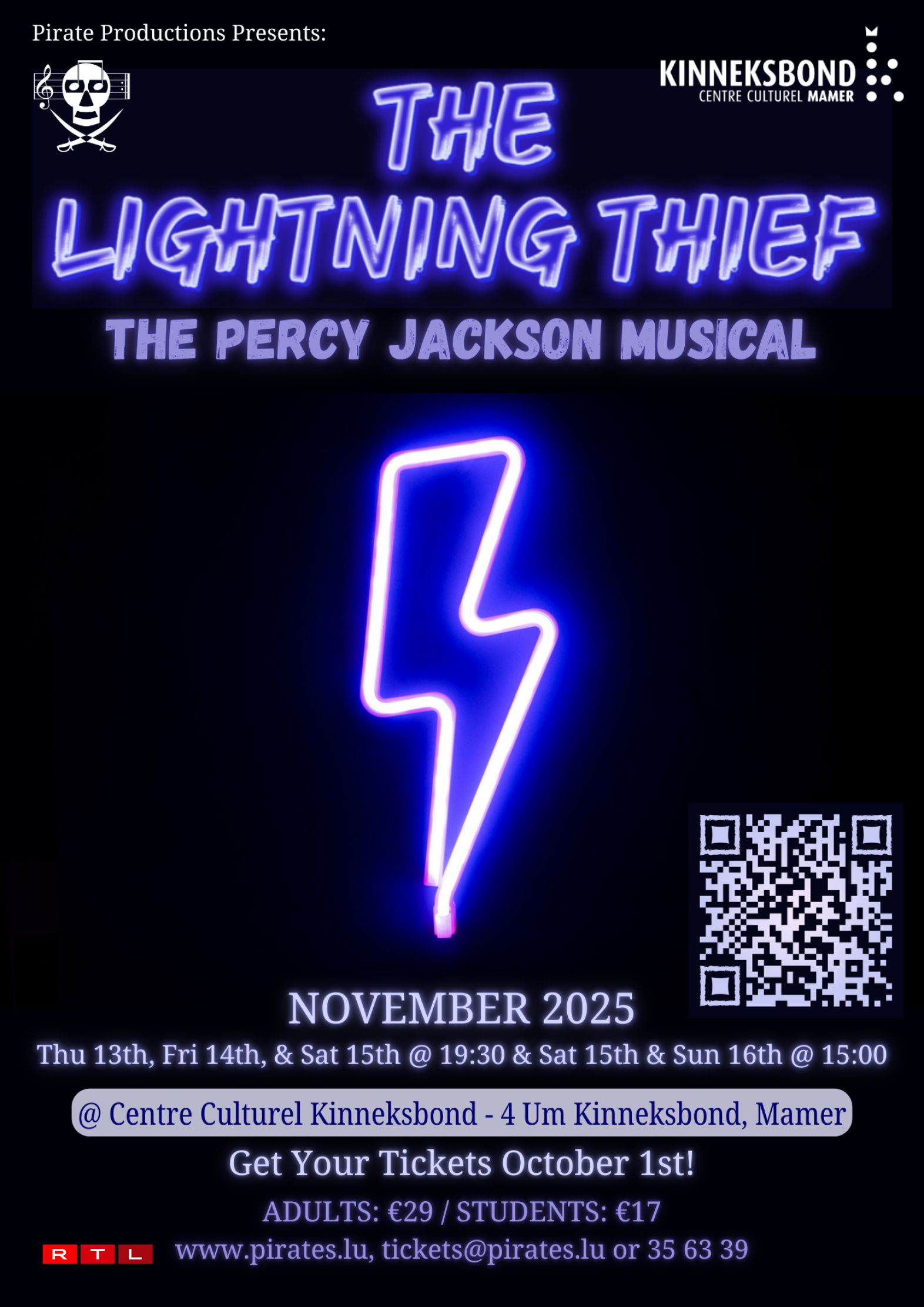 Tickets can be purchased online at www.pirateproductions.lu, by emailing tickets@pirates.lu or by calling 35 63 39. A limited number of tickets may also be available at the box office before each show, but availability is not guaranteed and Friday and Saturday evenings are already close to sold out.