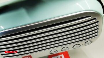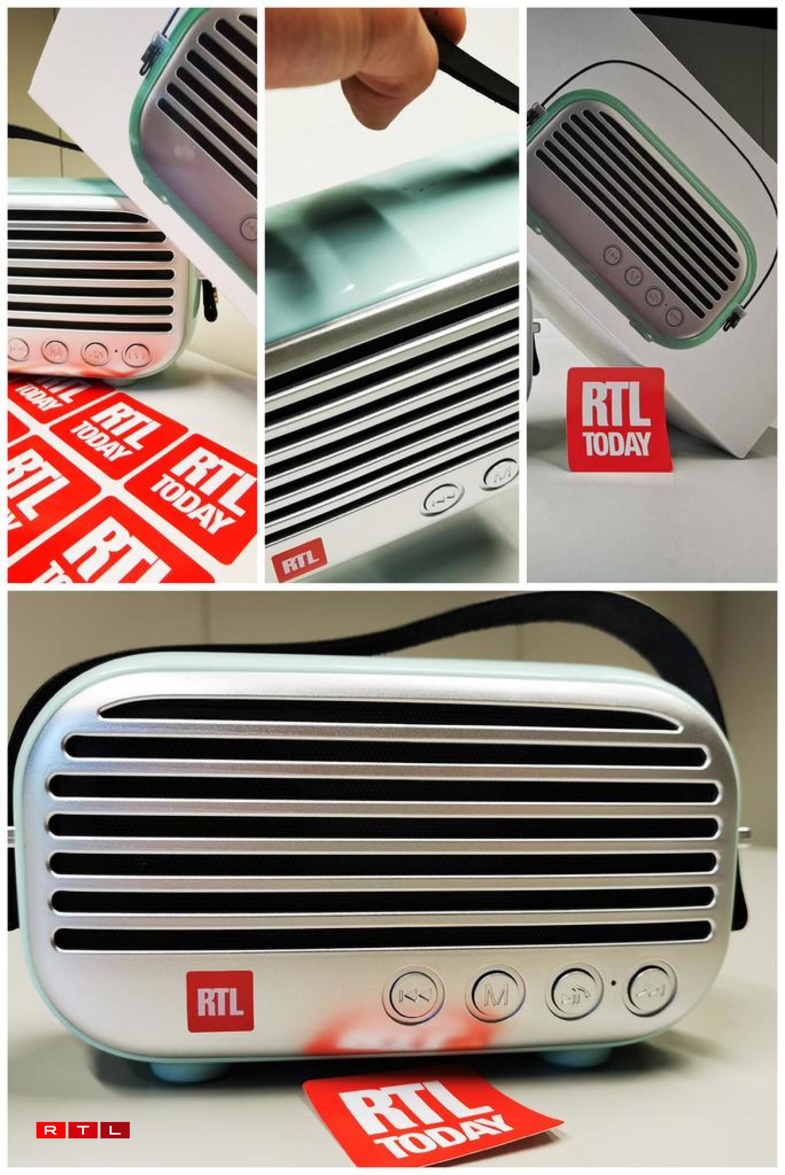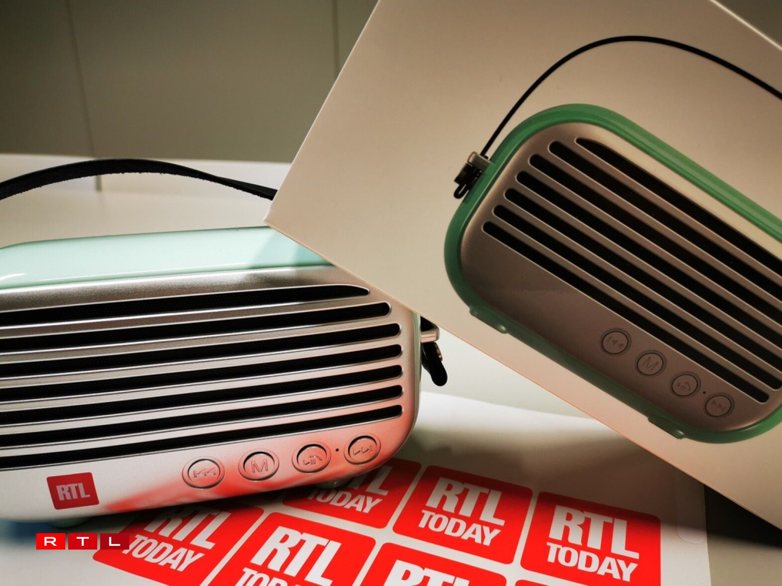 The retro look speakers, one in a grey(ish) green hue and the other in a green(ish) green tone are perfect for parties, gardening....gardening parties, bathrooms, bathroom parties and of course, the kitchen, where everyone knows the best parties are anyway.