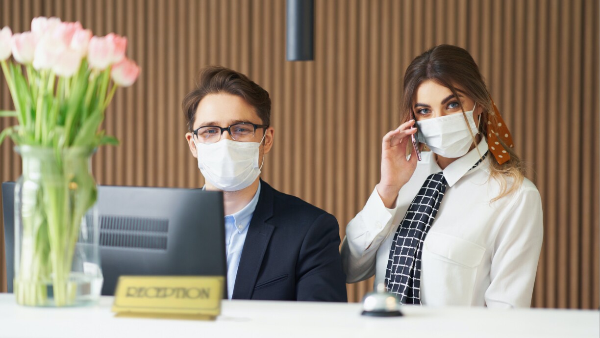 Following a stern look from you and a whisper from his colleague, the receptionist’s face turned pink.