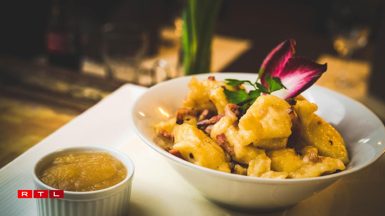 The creations range from traditional Kniddelen with bacon and cream to Kniddelen with tomato sauce, vegetables for vegetarians, or wine sausage – all the way to Kniddelen with game, prawns, mussels, or roulades, and some are even gratinéed with cheese.