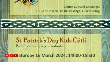Alongside their weekly Irish dance classes, they’re also proud to promote their annual St Patrick’s Day Céilí, taking place this 16 March at the Centre Culturel in Hollerich with two separate events: an afternoon dance and get-together for children, and another later in the evening for adults (flyer below). No reservations needed, with drinks and snacks provided at a cash-only bar.