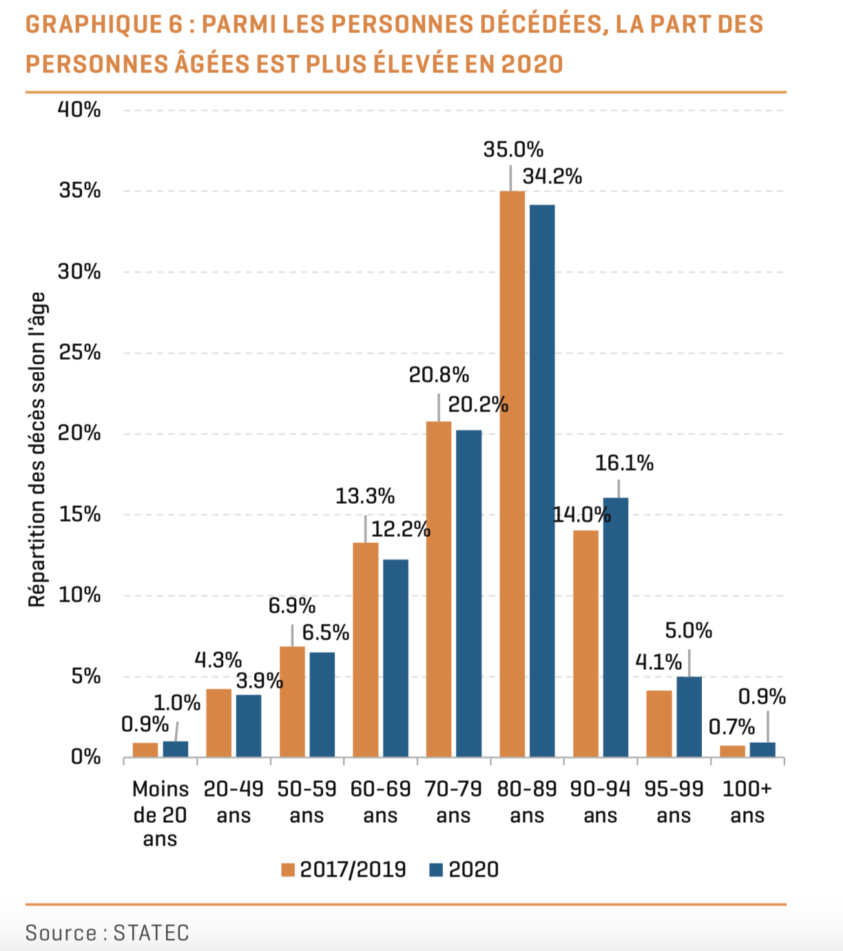 The mortality rate observed in 2020 is the highest recorded for about ten years. The increase in deaths was slightly more pronounced for men and mainly concerns people aged over 75.