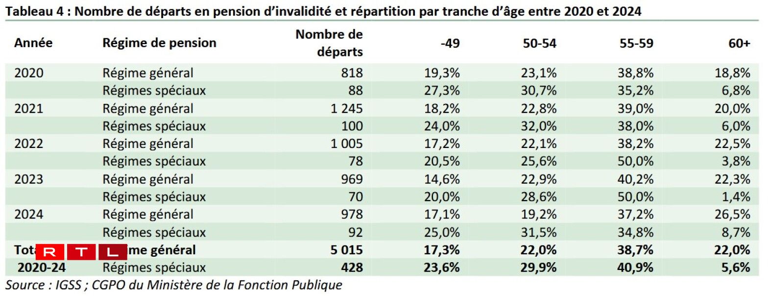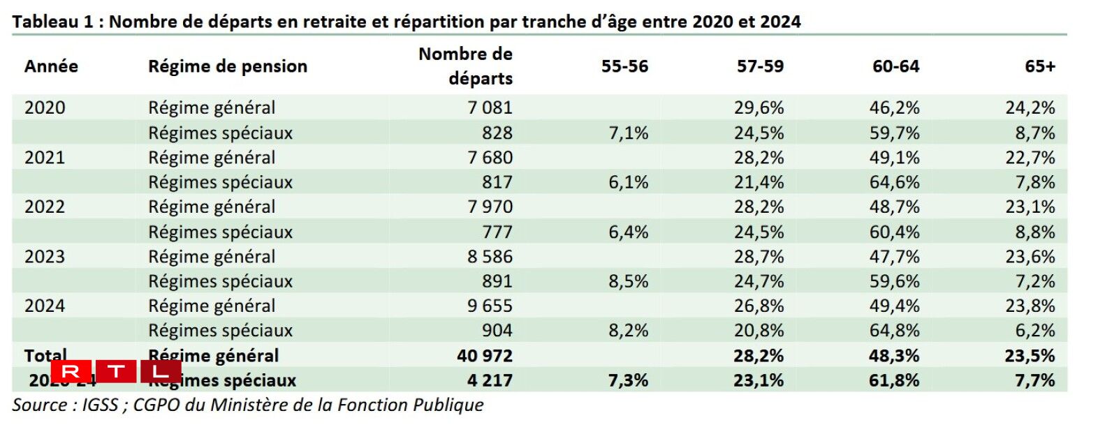 7% of civil servants enter retirement at 55 or 56 years of age, and 23% between 57 and 59 years of age.