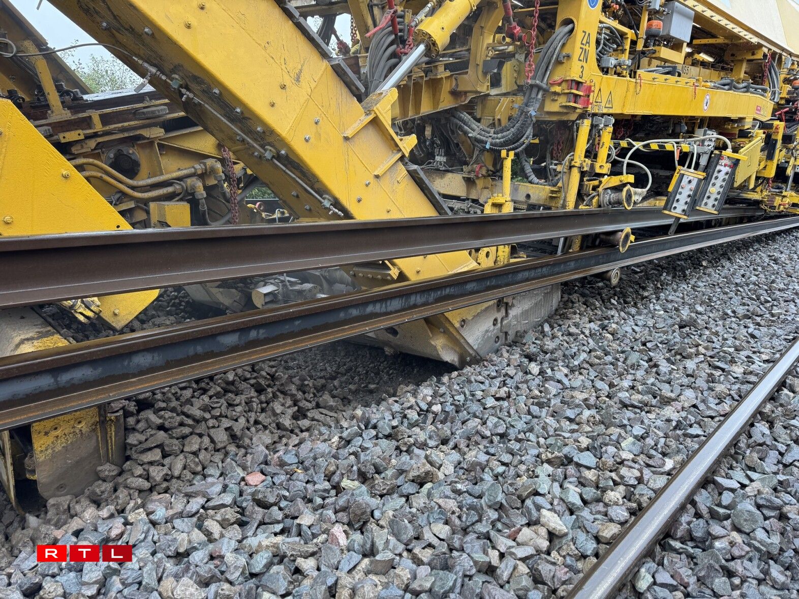 The 6.7-kilometre section has been closed for just three weeks – a short timeframe in which almost 27 kilometres of track must be renewed. To achieve this, highly specialised equipment is needed, namely the RUS 1000 S, a track-laying machine train from Austria that stretches nearly a kilometre in length.