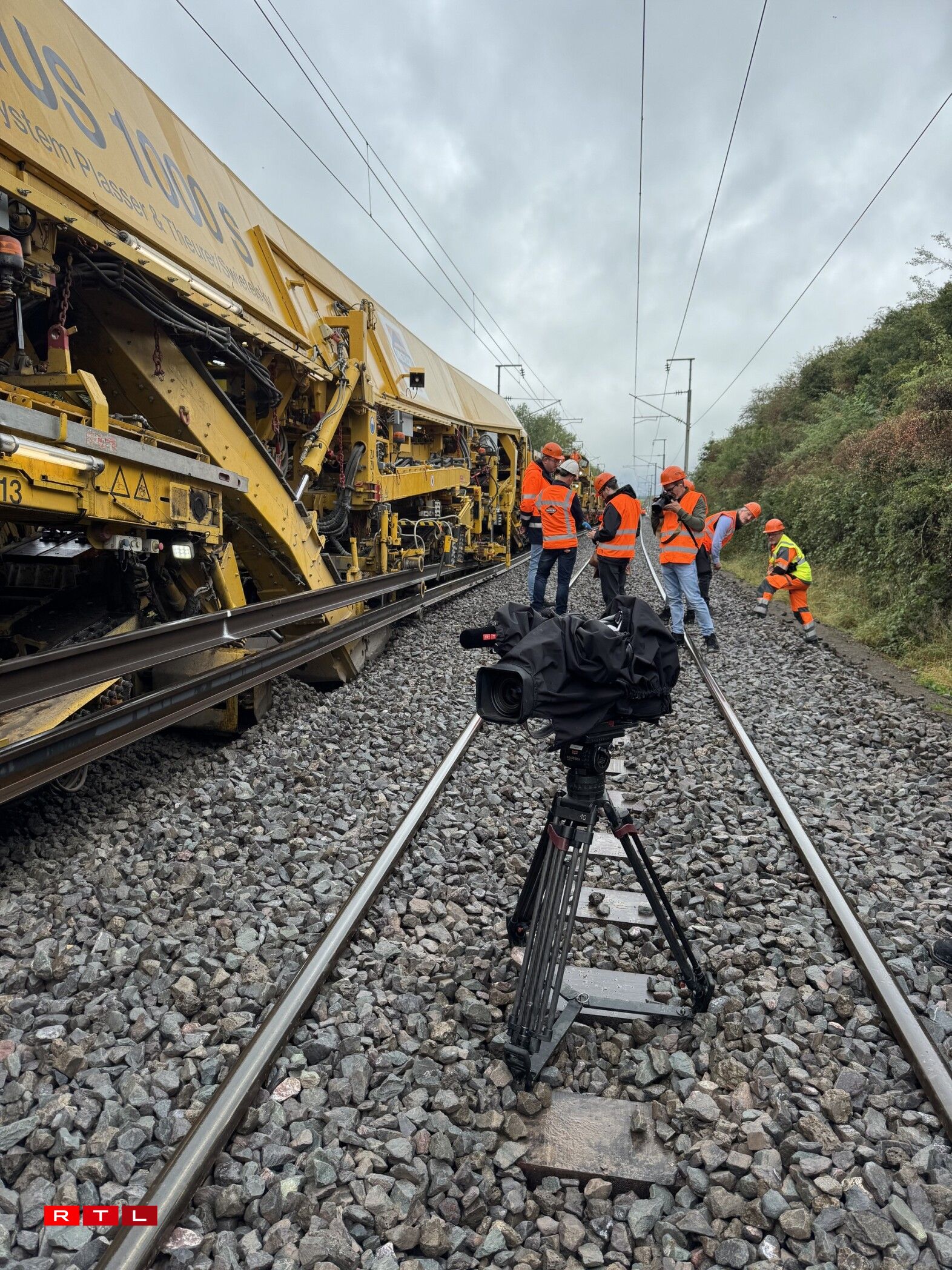 Although the line is closed during the project, RTL was able to step onto the track in full safety gear to see the giant machine in action. Unlike an ordinary train, the RUS 1000 S can, in a single pass, lift away the rails, remove the old sleepers, clean and screen the track ballast, and reinstall the materials with precision. It is being used in Luxembourg for the very first time.