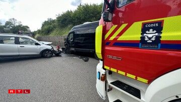 It appears that a minibus and a car collided head-on for as yet unknown reasons. An emergency doctor was airlifted to the scene. According to information obtained by RTL, two people were injured, one of them seriously. The road is closed until further notice.