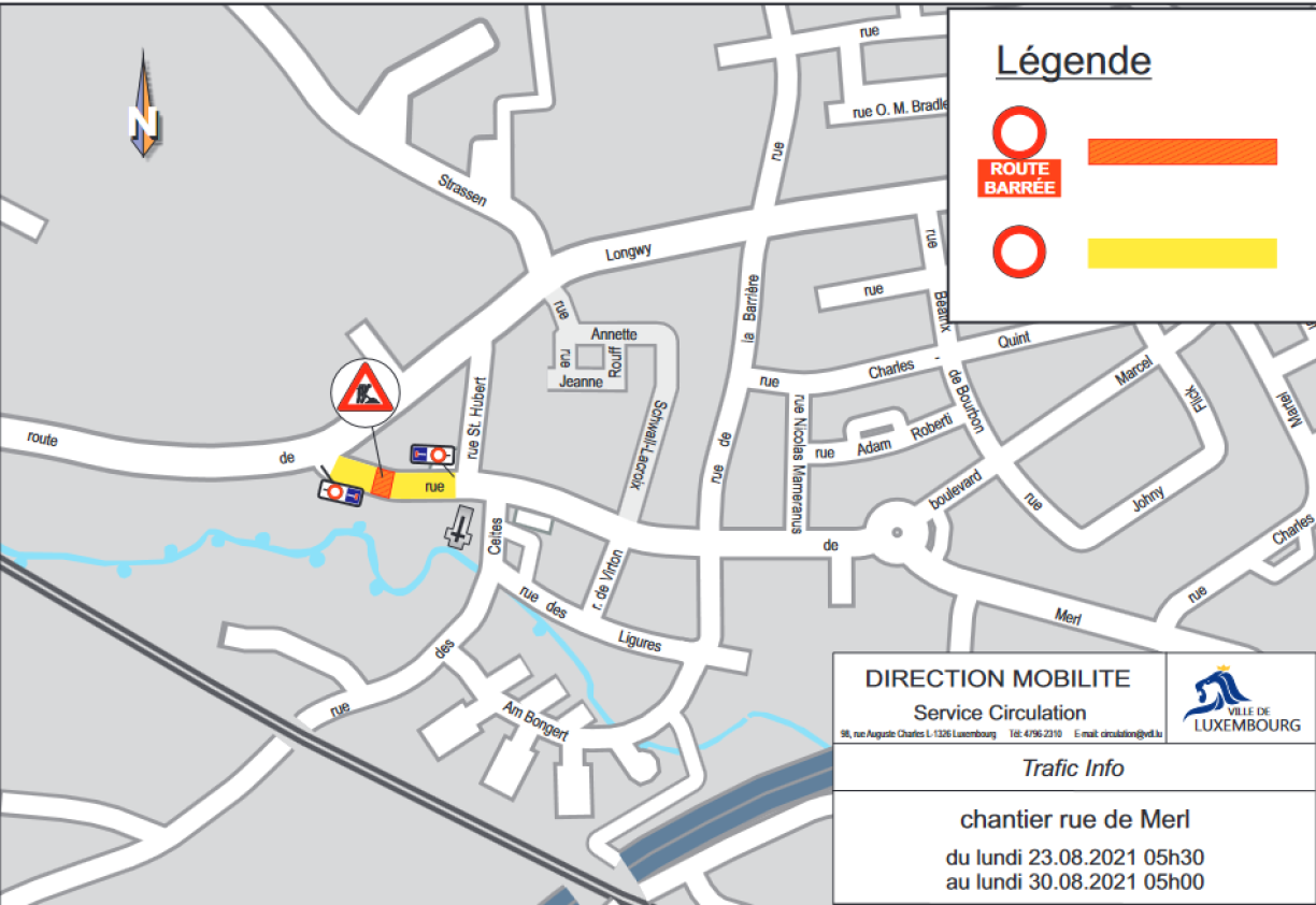 Luxembourg CityConstruction work on Rue de Merl from 23 to 30 August