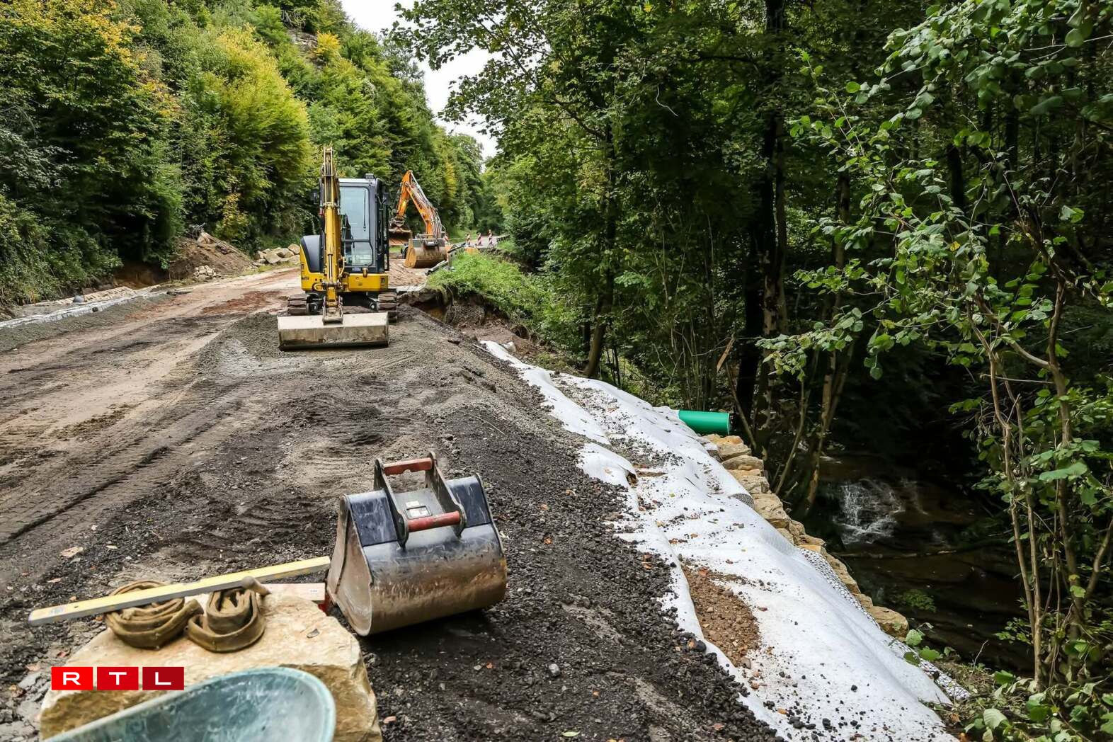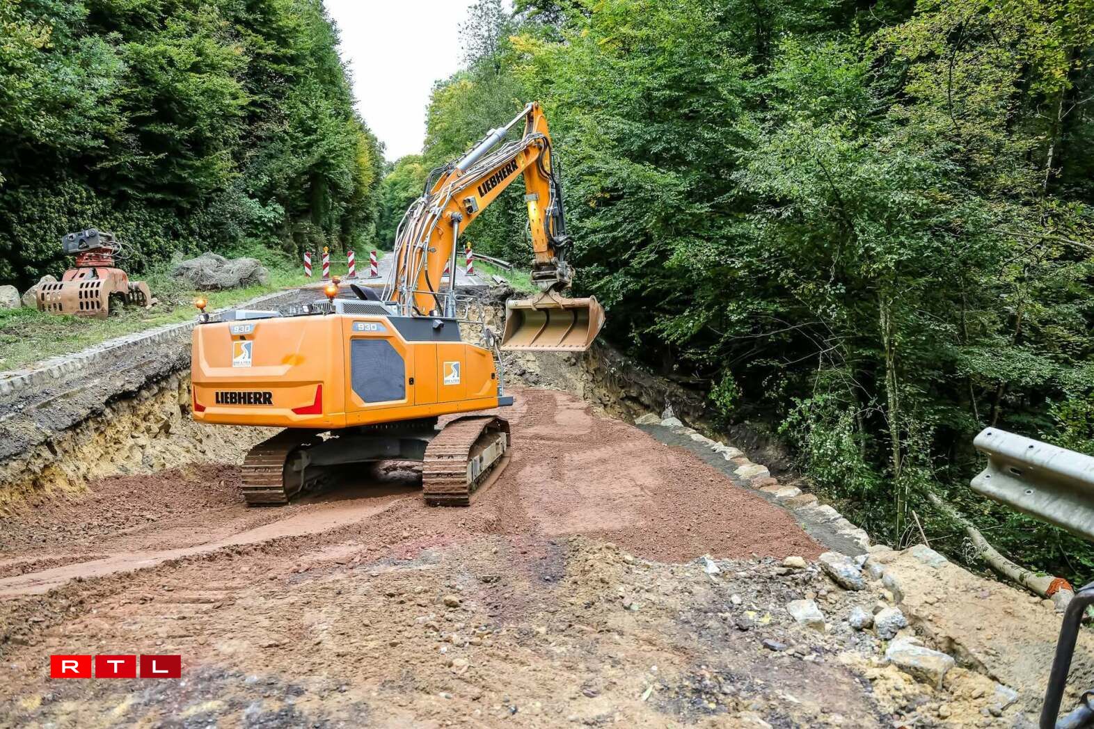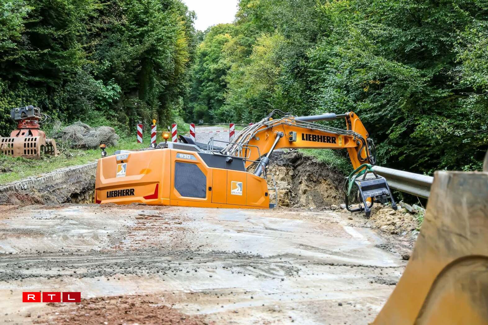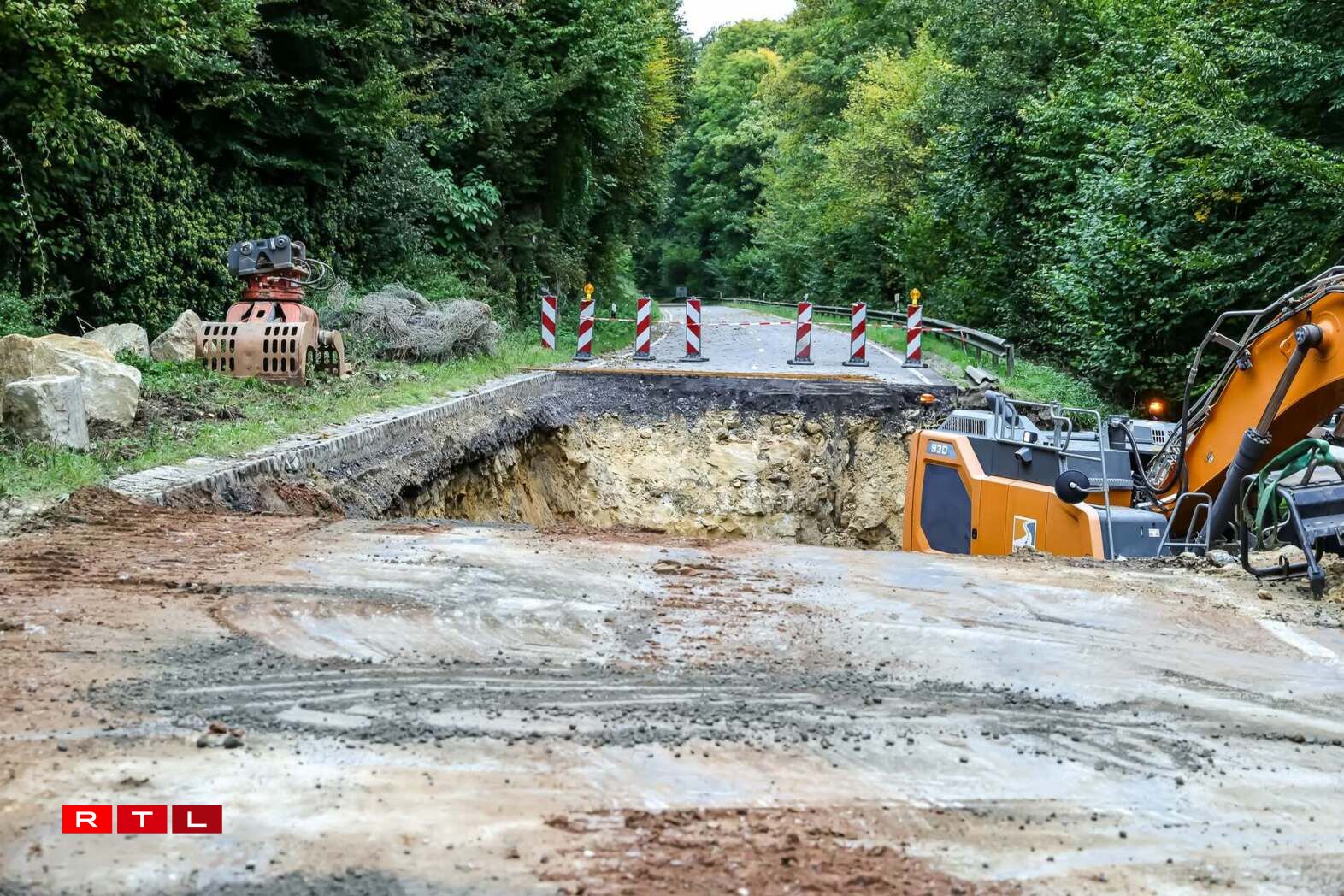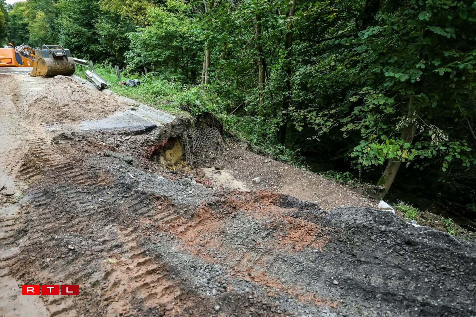 The road was damaged by runoff water during the night of 8-9 September, which washed away part of the soil beneath the surface and caused a section to collapse. The National Roads Administration is carrying out repair work to restore the road, a vital connection for the municipalities of Mersch and Fischbach.