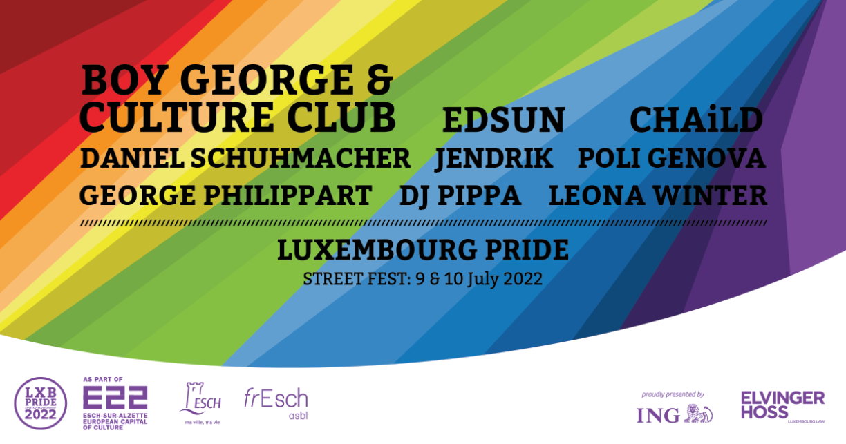 On Saturday July 9, besides George Philippart, DJ Pippa will take the stage at Place Helen Buchholtz. Local headliners include CHAiLD and Edsun on the main stage. As a big highlight, thanks to the support of the city of Esch-sur-Alzette and frEsch asbl, none other than Boy George & Culture Club will get the city centre dancing.