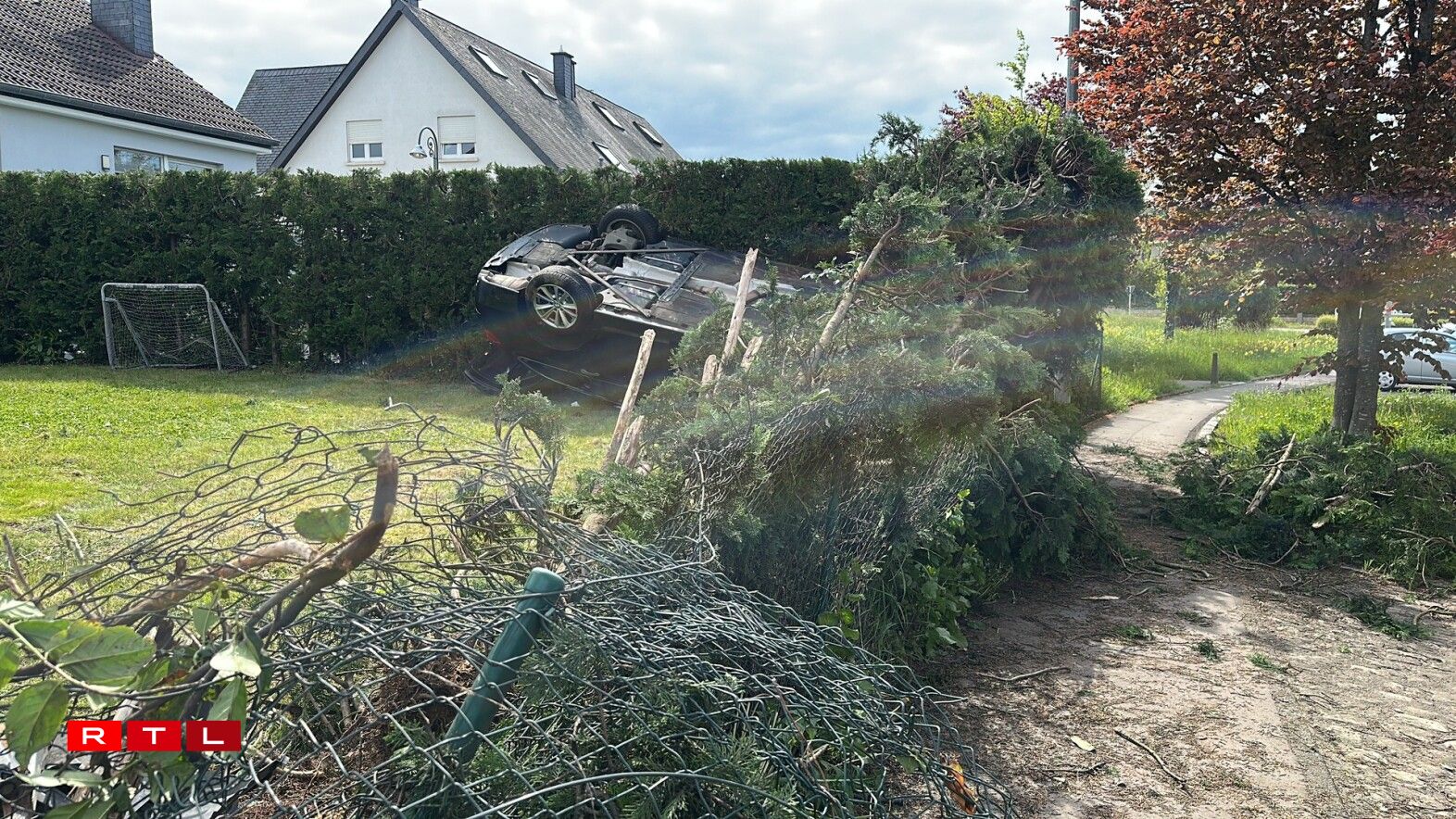 A driver sustained injuries Wednesday afternoon after losing control of their vehicle on Route des Trois Cantons in Dahlem, causing the car to crash through a garden fence and overturn multiple times.