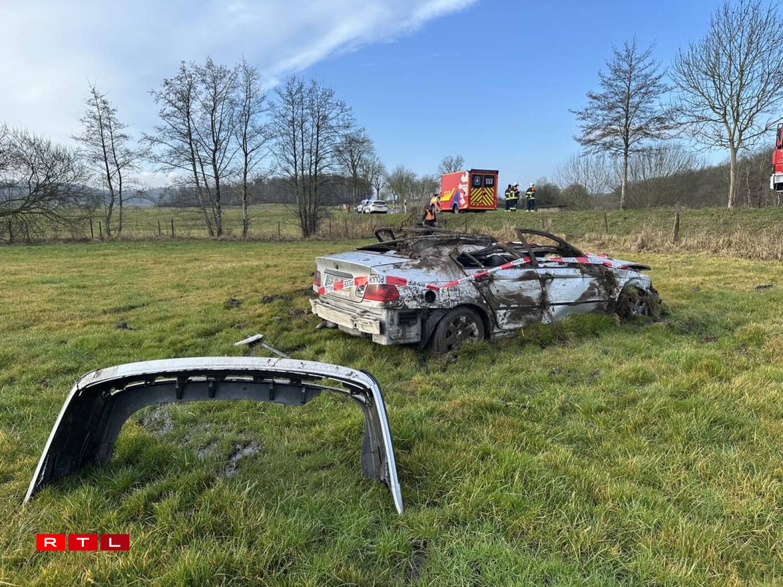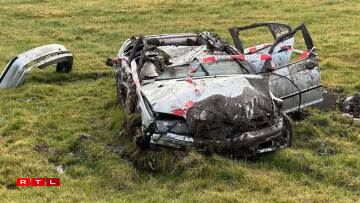 His vehicle then rolled several times before coming to rest in a field below the road. Despite the severity of the impact, the driver escaped virtually unscathed, while the convertible was clearly badly damaged.
