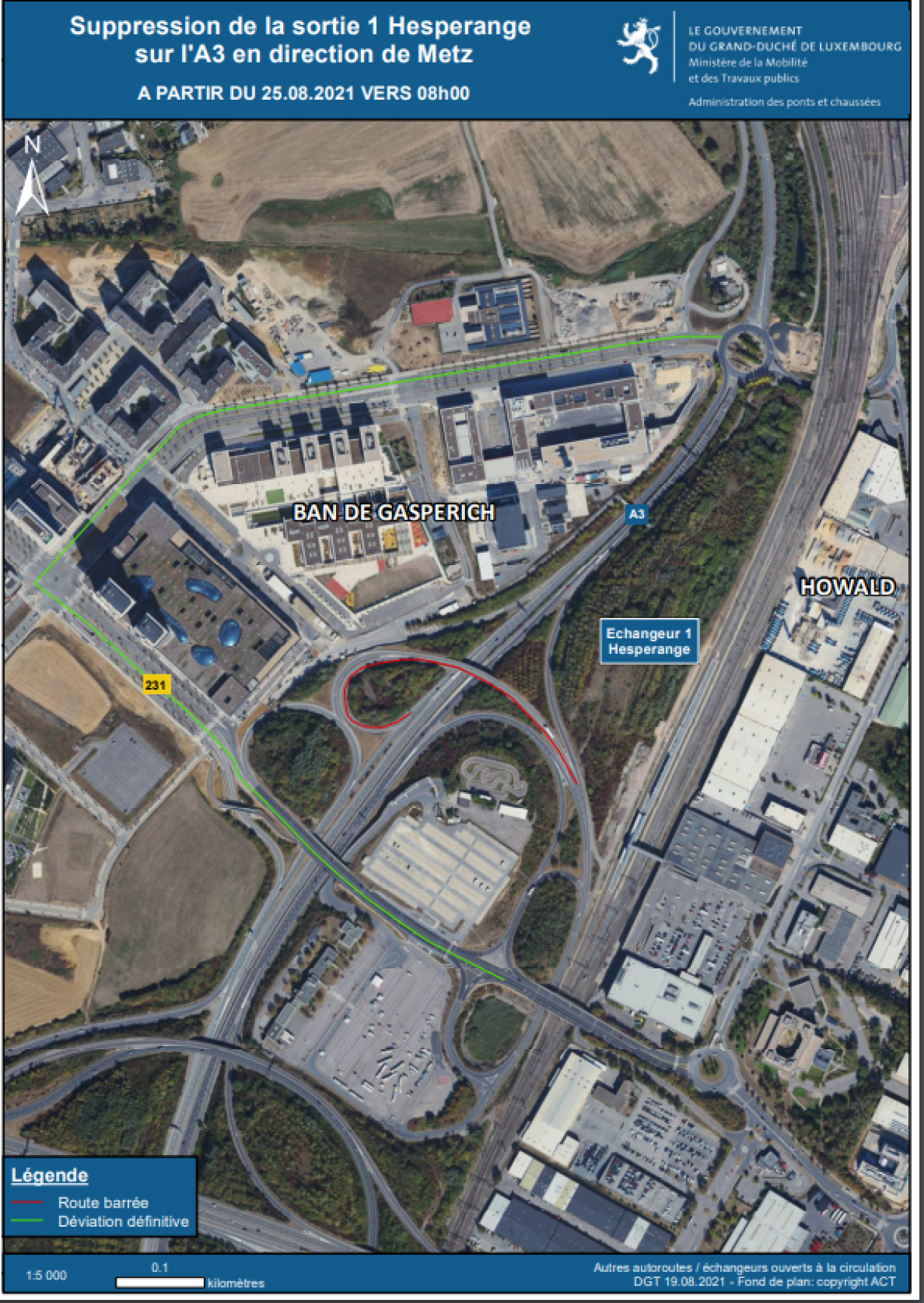 The Bridges and Roads Authority previously announced that the exit ramp of the Hesperange interchange on the A3 will be permanently closed on Wednesday.