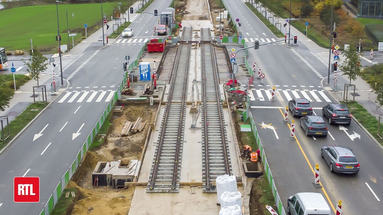 The extension to Findel takes place in parallel. A bridge spanning the A1 is currently in construction. In 2024, the tram will drive between Findel Airport through the City and finally to Cloche d’Or.