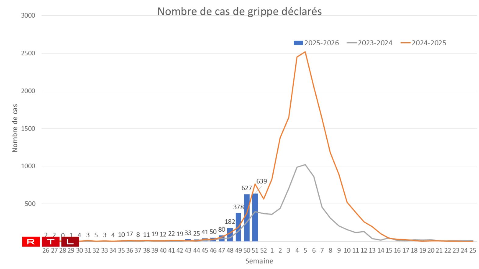 The annual influenza epidemic is underway in Luxembourg, with case numbers rising only slightly last week. Health authorities reported 639 confirmed cases, representing a 2% increase from the previous period. Children and adolescents remain the most affected demographic.
