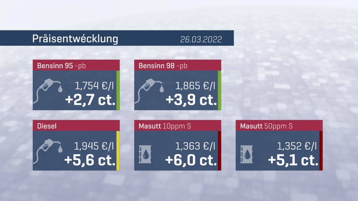 Heating oil went up by 4 cents per kilo to €1.362. Both mazut fuel types also saw an increase, with 50ppm rising to €1.352 per litre and 10ppm going up by 6 cents to €1.363 per litre.