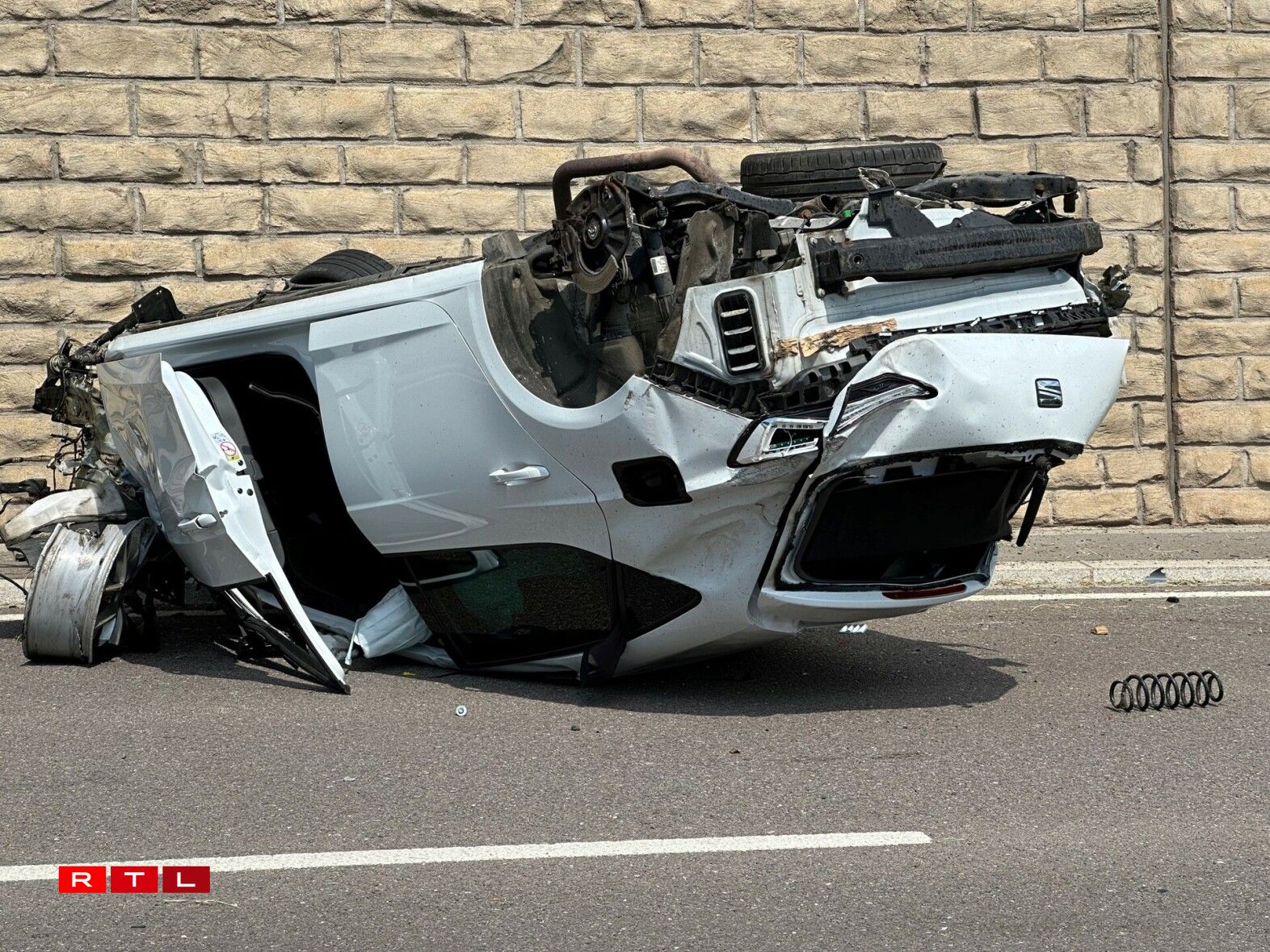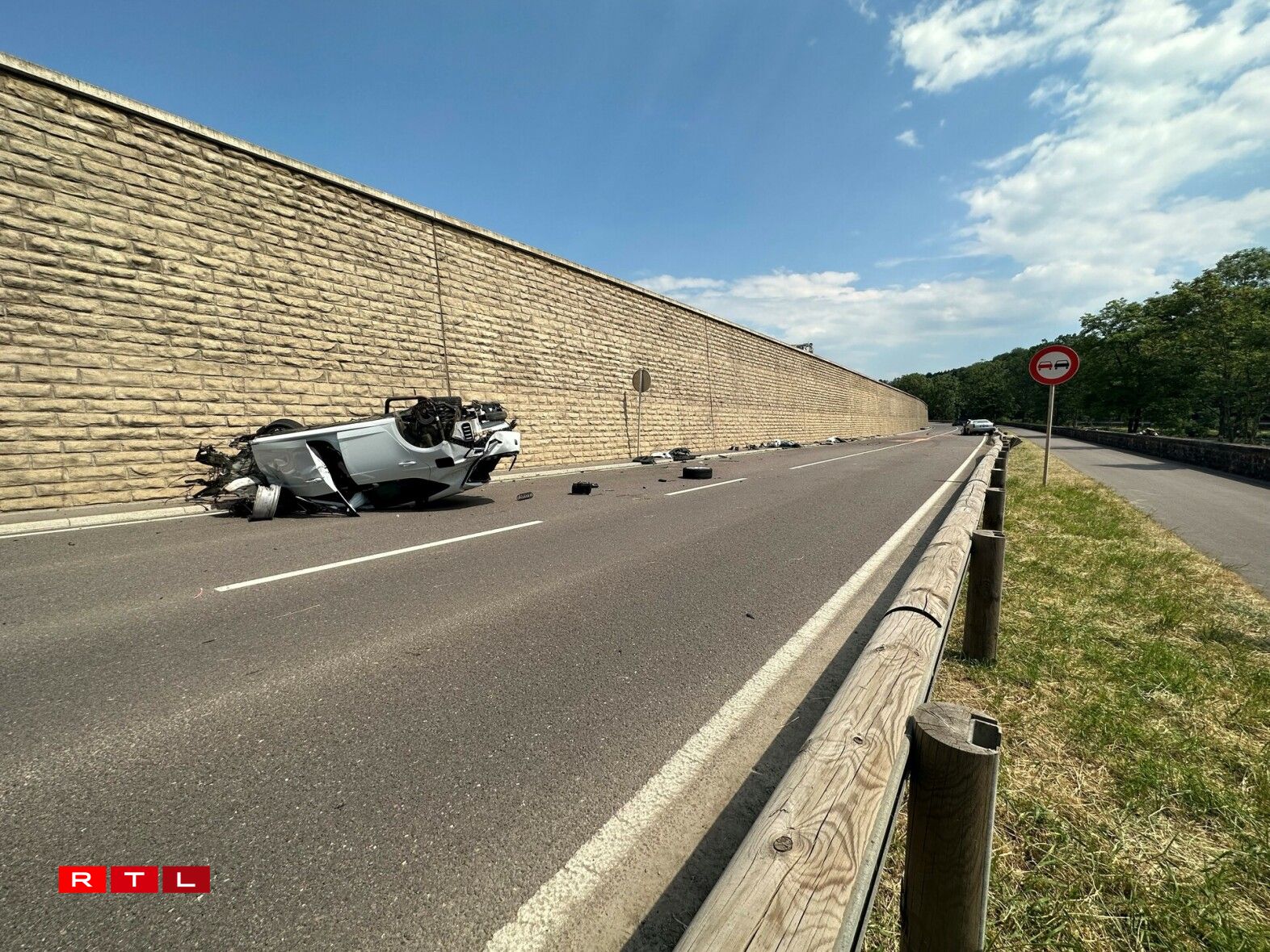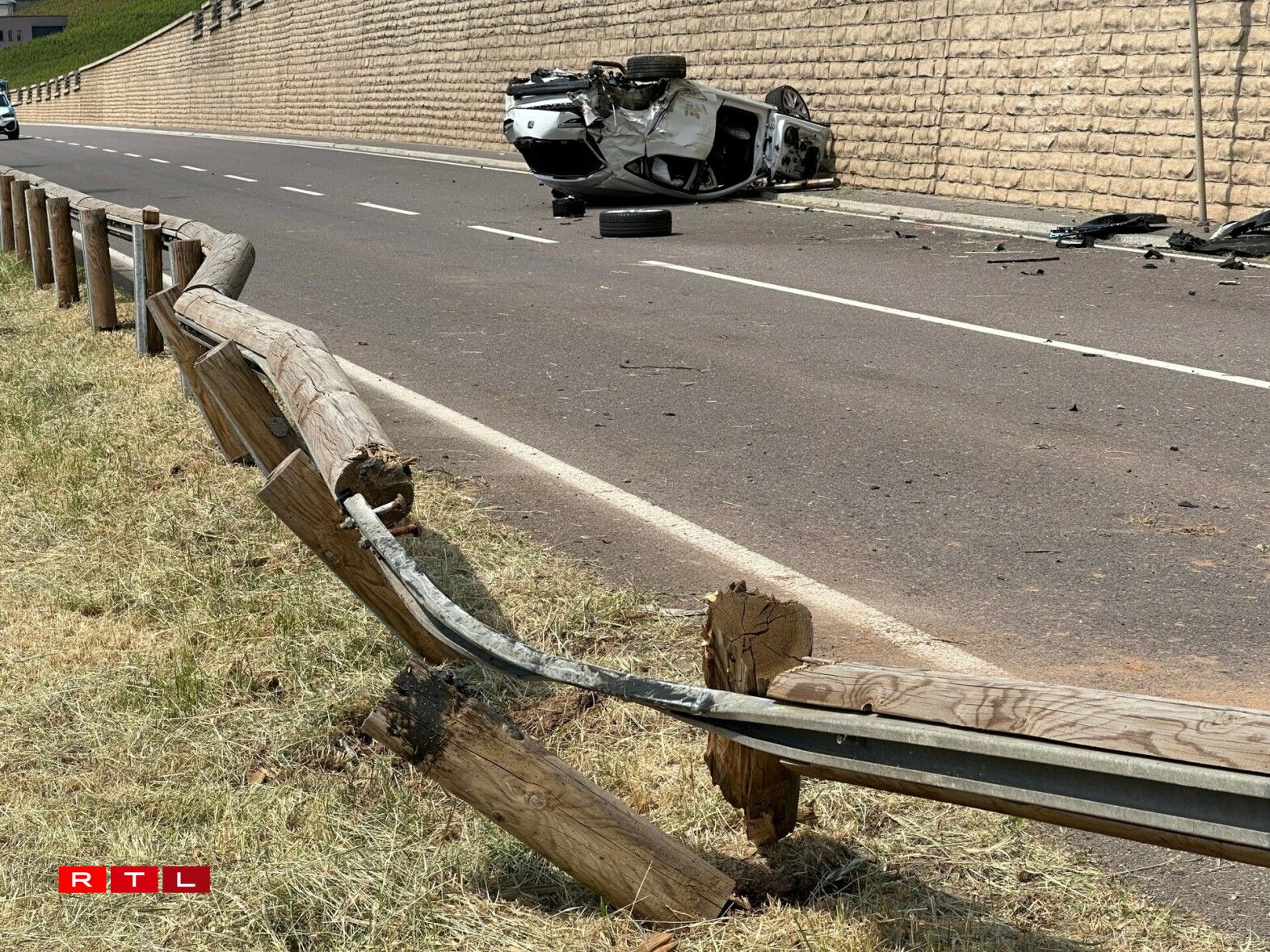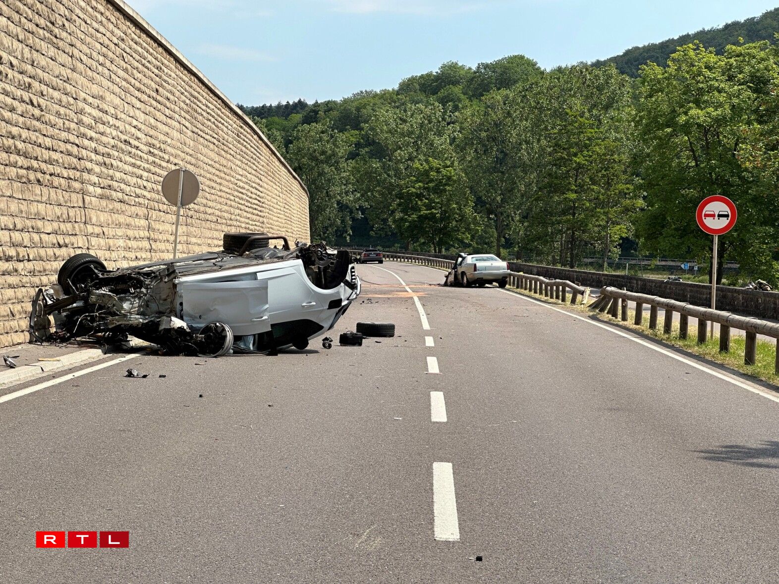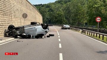 According to police information, a vehicle coming from Ahn veered onto the other lane in a bend, hitting a second vehicle coming from the other direction. The first car crashed and rolled over, ending up on its roof. The driver was seriously injured.