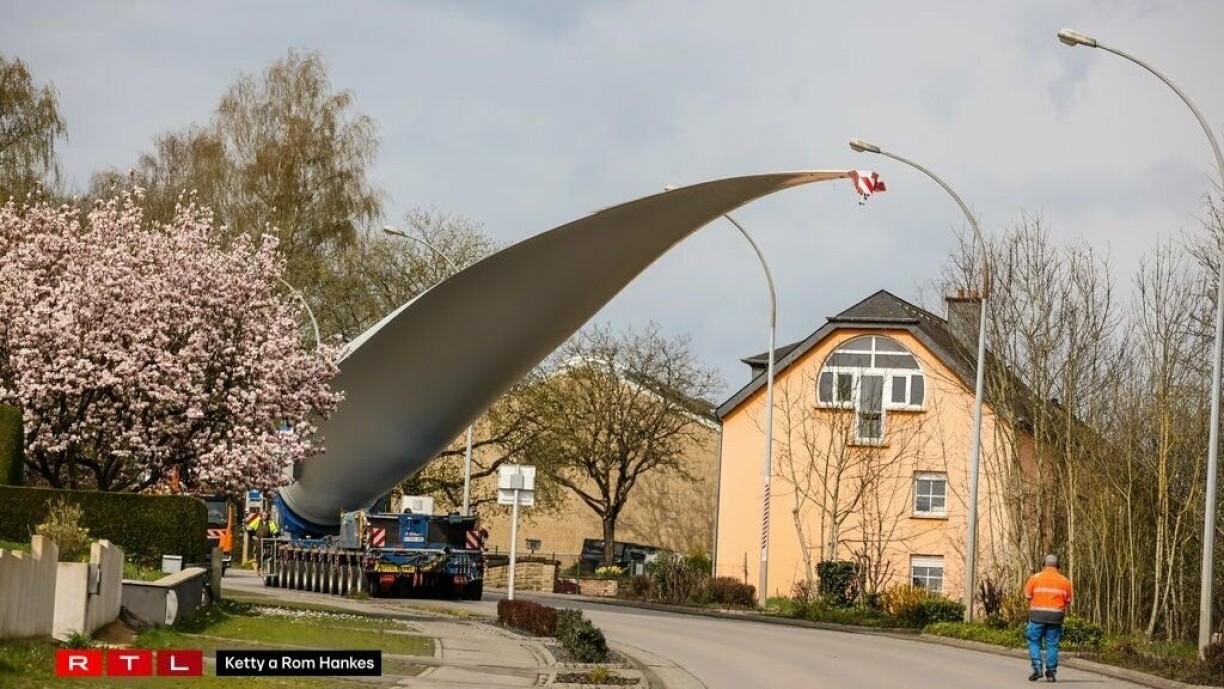 Wednesday saw the first of three transports. Originating from Fond de Heiderscheid, where the nearly 70-metre-long rotor blades are temporarily stored, each transport route extends through Feulen and Mertzig before reaching its final destination in Karelshaff.