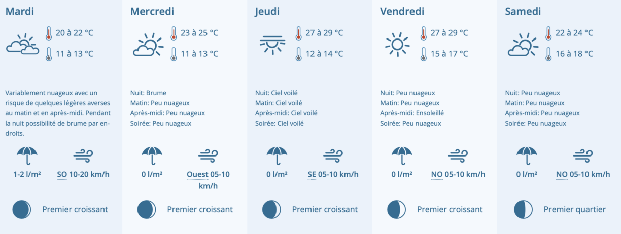 On Thursday, temperatures will range between 27 and 29°C in the afternoon. According to MeteoLux, Friday may see highs of up to 29°C in the afternoon. Although there are still a couple of days to go, it currently looks as though day temperatures will also remain above 22°C on Saturday.