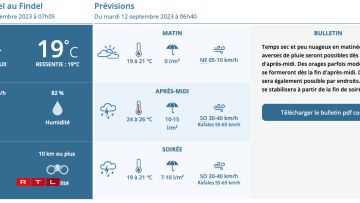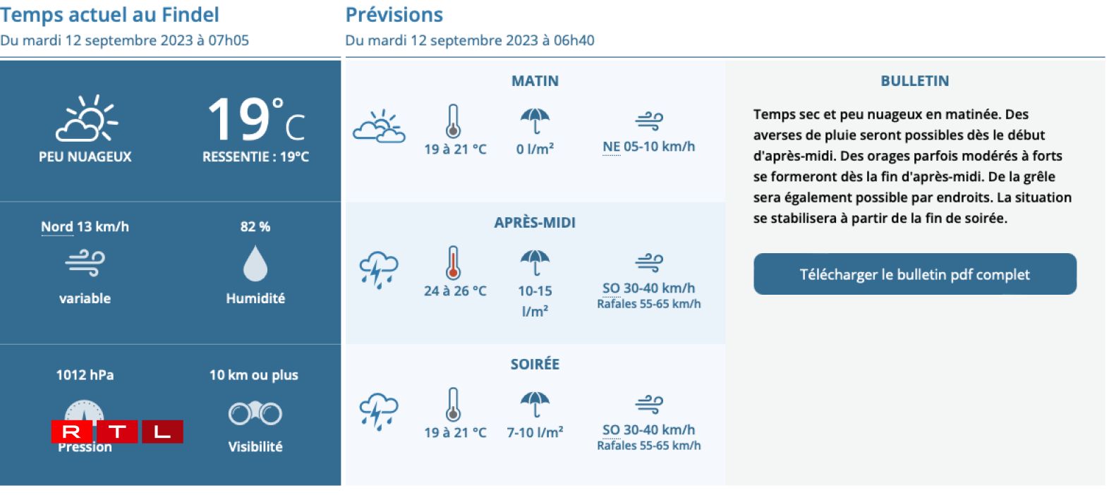 Météolux has raised the alert level to orange, in effect from 5pm to 10pm on Tuesday, signalling the likelihood of “severe” thunderstorms. Luxembourg’s national weather service advises residents to prepare for the possibility of hailstones reaching sizes of up to 1 cm and “heavy rain” that could result in precipitation of up to 35 litres of water per square meter within one hour. In addition, Météolux forecasts “very strong gusts of wind” sweeping across the country, with speeds reaching up to 80 km/h.