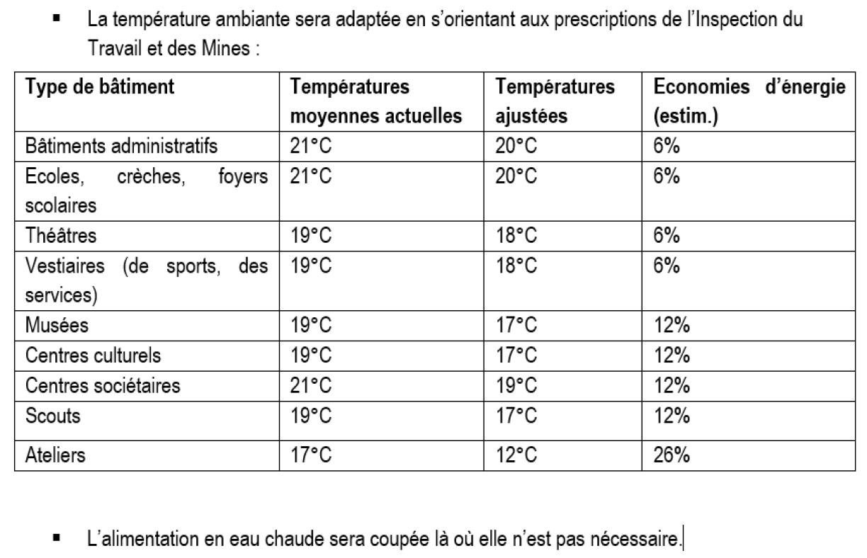 Public buildings, swimming pools, gymnasiumsLuxembourg City intends on saving 15% on energy until March