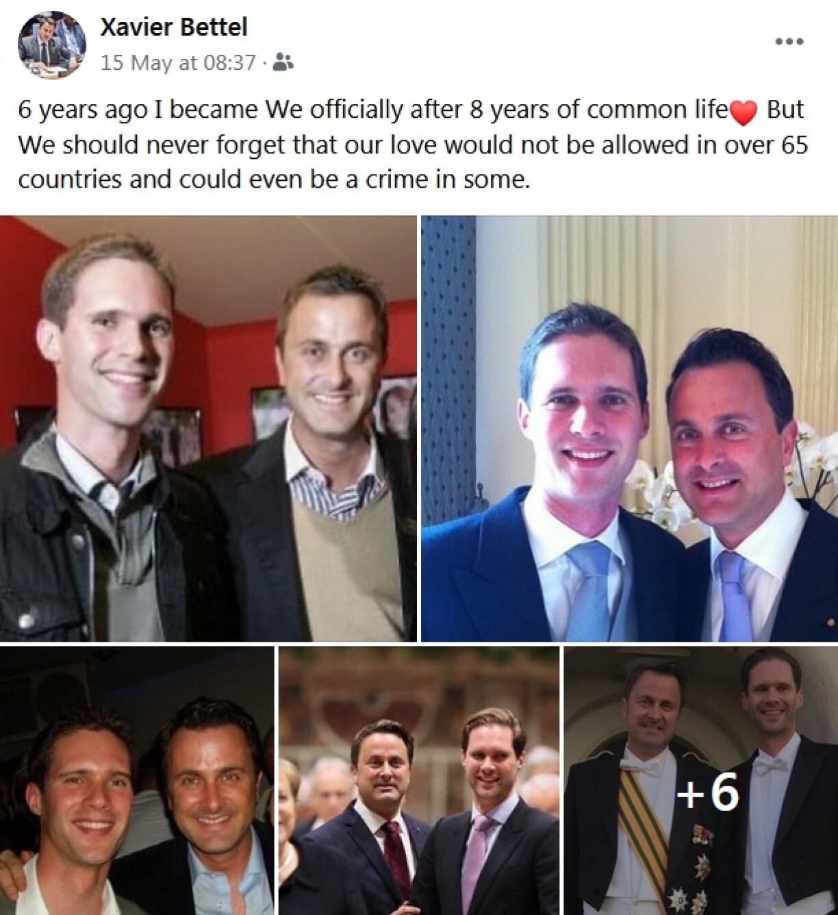In light of IDAHOBIT, Prime Minister Xavier Bettel took to social media to remind people that his eight-year-long relationship with Gauthier Destenay, as well as their marriage, would still be prohibited in over 65 countries and even constitutes a crime in others.