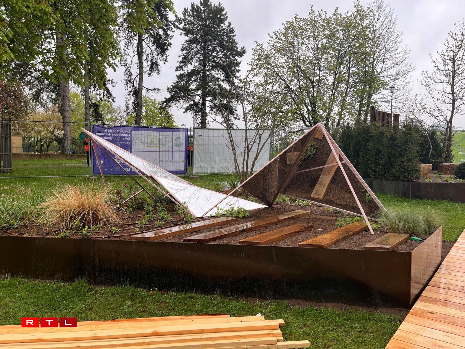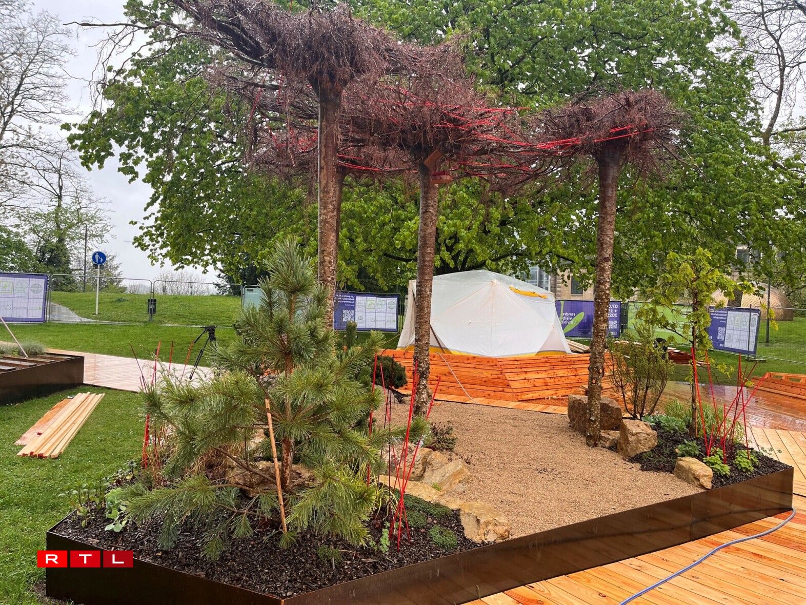 At Fondation Pescatore, the exhibition is coming together slowly but surely. In collaboration with the Luxembourgish horticultural federation, the event organisers created a combination of various small installations, including a vegetable patch and an “art classroom”.