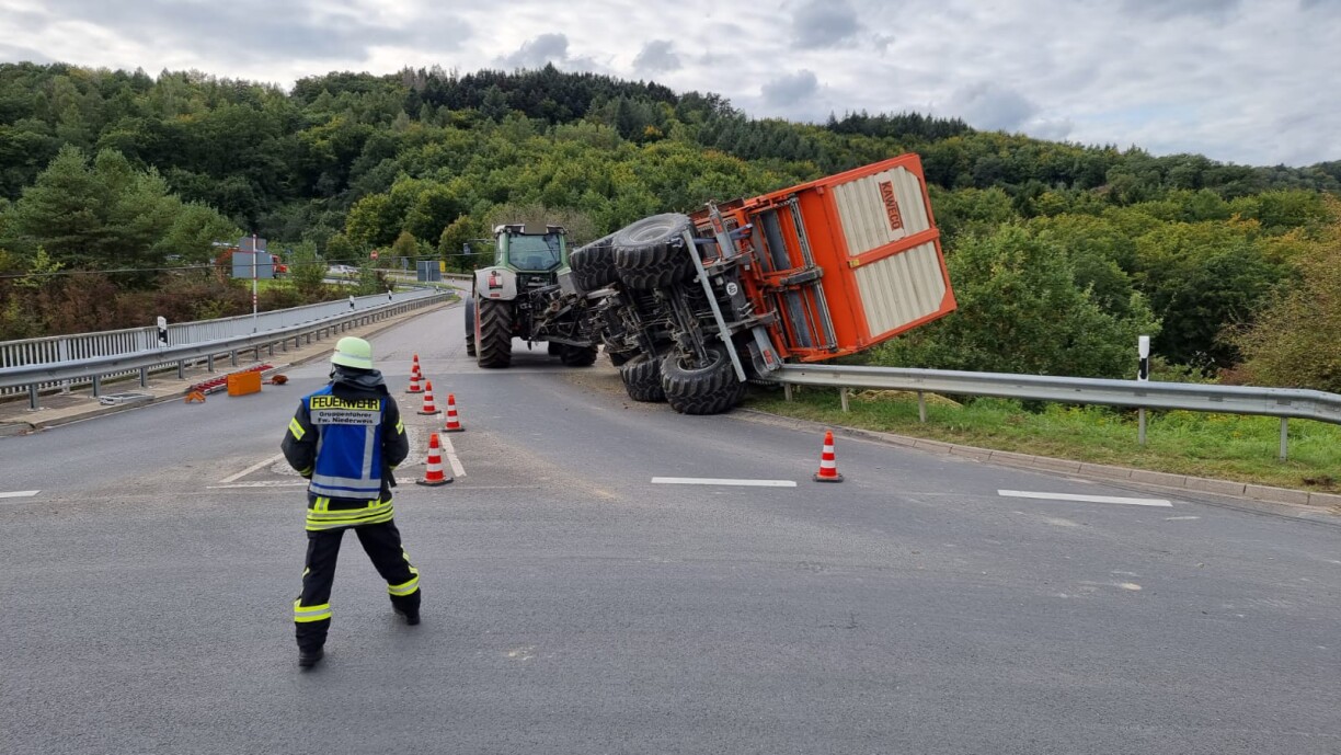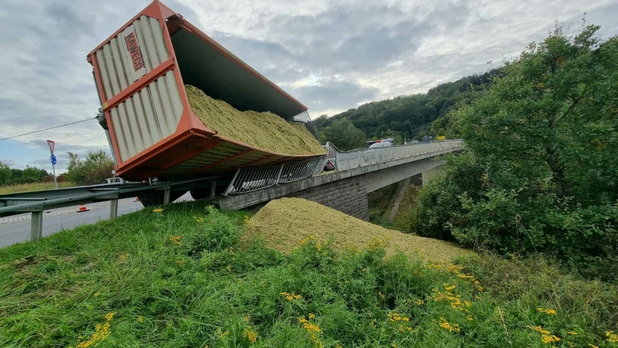 According to the German police, the farmer was very lucky as there was a real chance of both the tractor and the trailer falling several meters down onto another road.