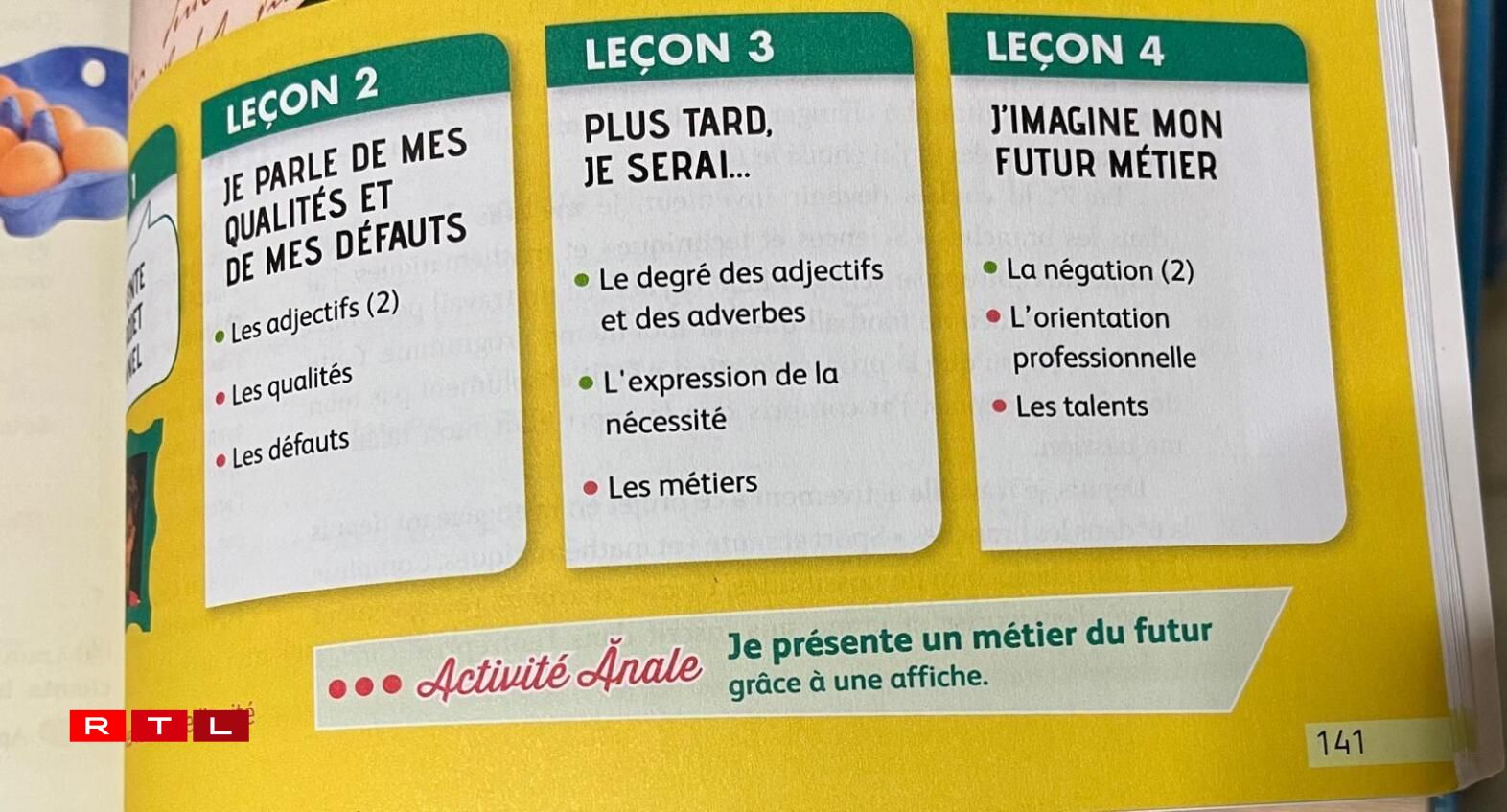 The book, Imagine Luxembourg, was designed to help pupils practise spoken French. On several pages, however, the section titled ‘Activité Finale’ (final activity)* appeared incorrectly as ‘Activité Anale’ (anal activity). Education sources told RTL that this was not the only mistake in the book.