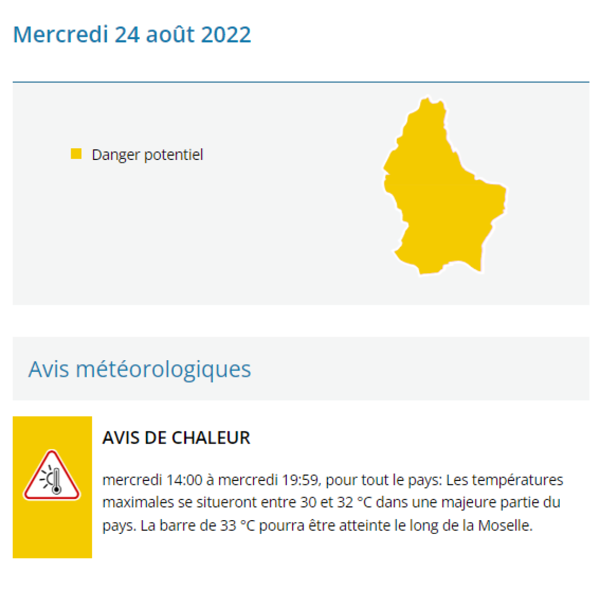 Given that Météolux has already forecast the same temperatures for Thursday, it seems likely that this heat advisory will be prolonged.