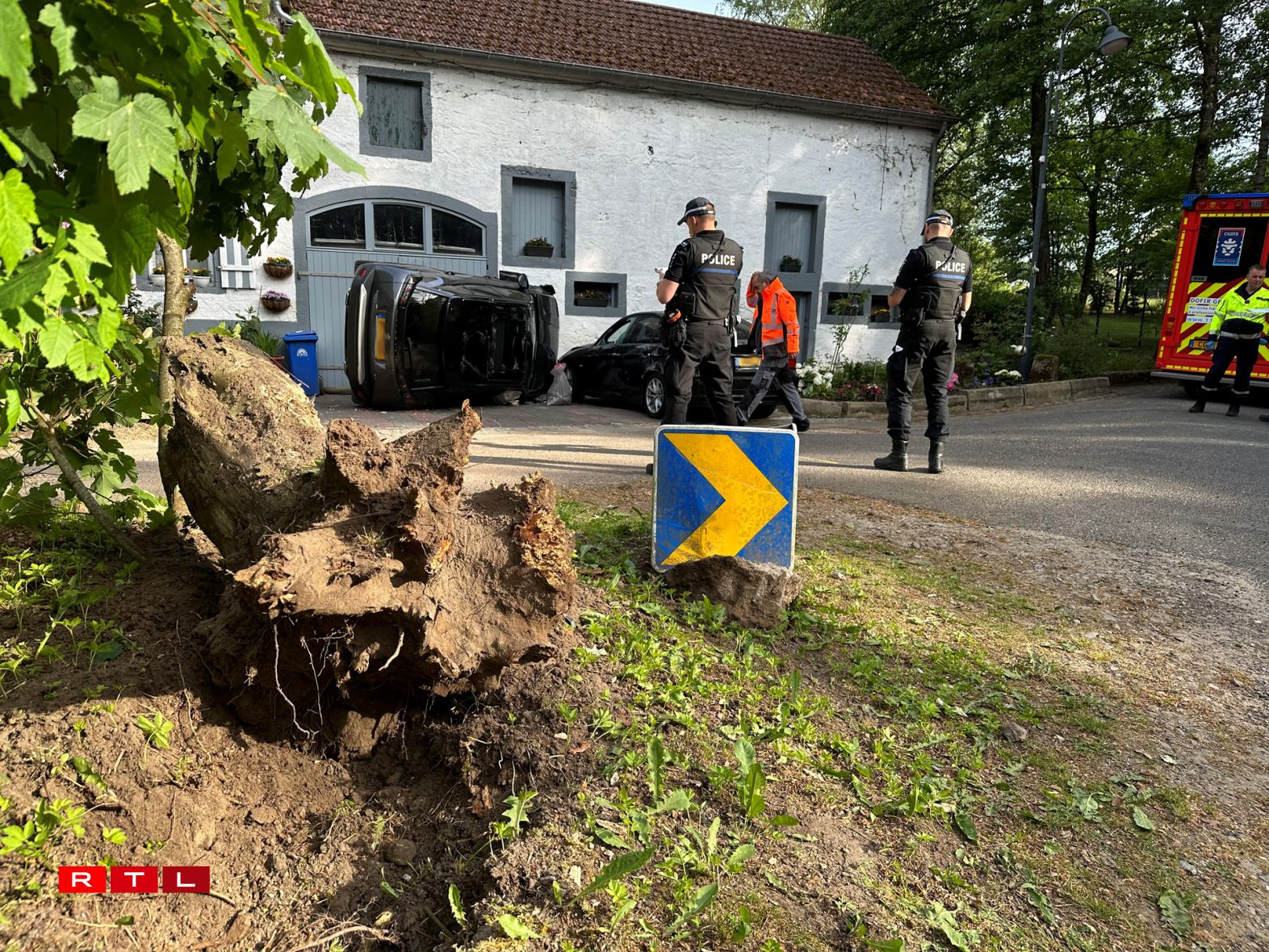 According to preliminary information, the motorist in question lost control over his car in a right turn. As a consequence, the vehicle came off the road, collided with a tree, and finally landed on its side right in front of a house. A stationary car was damaged in the process.