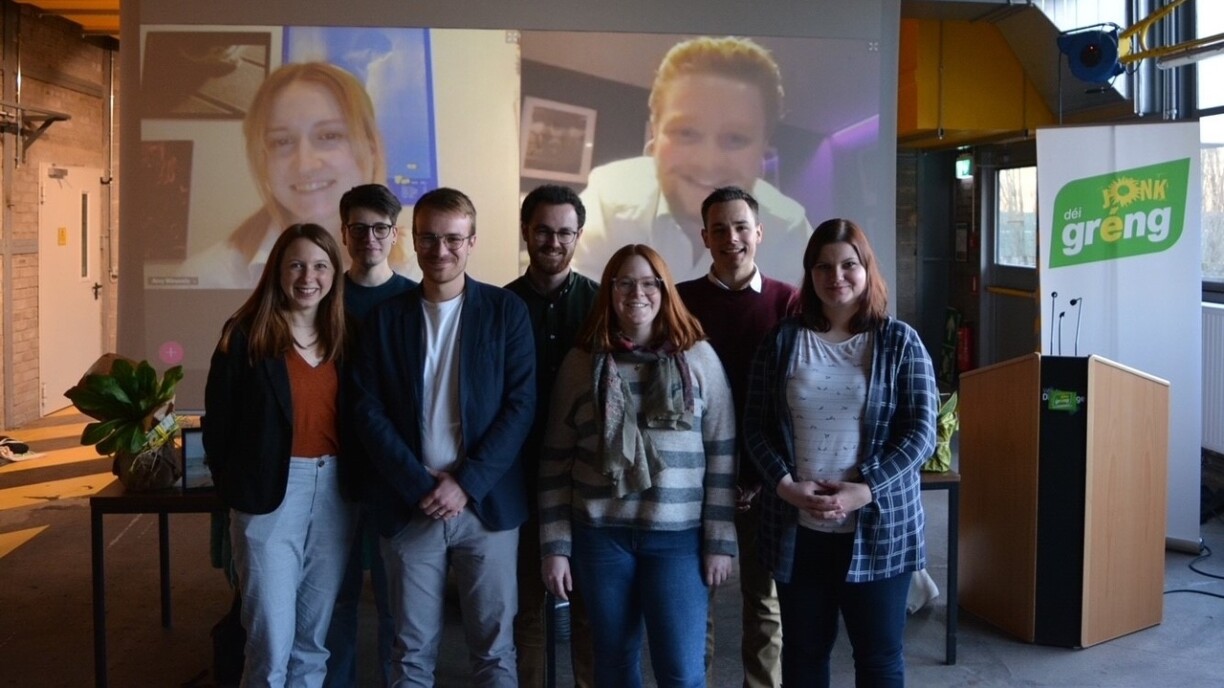 The Young Greens used the opportunity to present changes to their board. Amy Winandy and Fabricio Costa will replace Joël Back and Tanja Duprez as spokespeople of the party. Georges Biever was elected treasurer and will thus replace Felix Schmit. Further members of the board are Annemarie Schintgen, Caroll Ewen, Tammy Huberty, Joël Back, Kris Hansen, Liam Bremer, and Tanja Duprez.