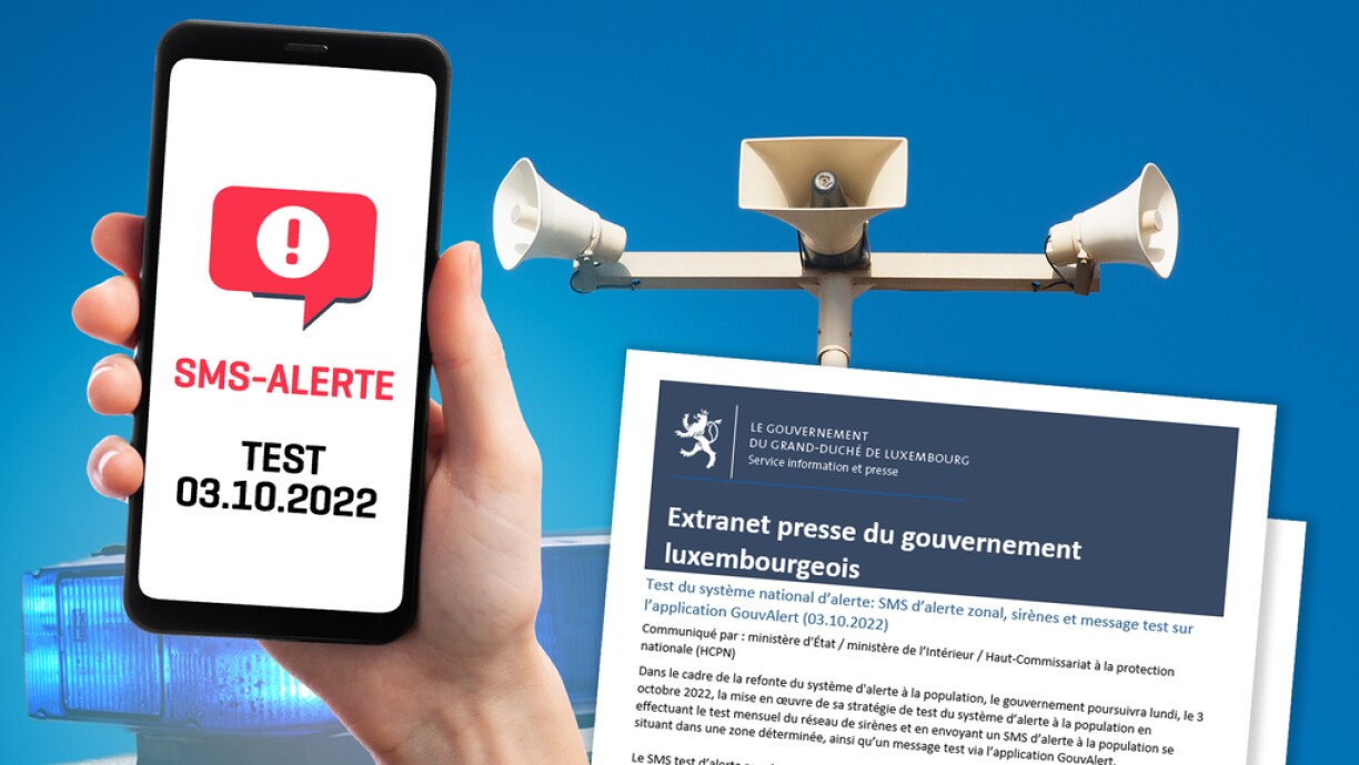 The government’s new emergency strategy, designed to warn the population of natural disasters or similar incidents, will be tested in the north of Luxembourg on Monday 3 October. People living in the municipalities of Bettendorf, Bourscheid, Colmar-Berg, Diekirch, Erpeldange-sur-Sûre, Ettelbruck, Schieren, and Tandel will thus receive a message with the following text: “LU-ALERT / ALERTE TEST / NO ACTION REQUIRED / AUCUNE ACTION REQUISE / KEINE HANDLUNG ERFORDERLICH / INFOS: GD.LU/LU-ALERT0.”