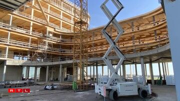 The building is being built for the companies working in aviation, but there will also be shops, a nursery and fitness centre as well as a car park with 1,500 spaces and a hotel.