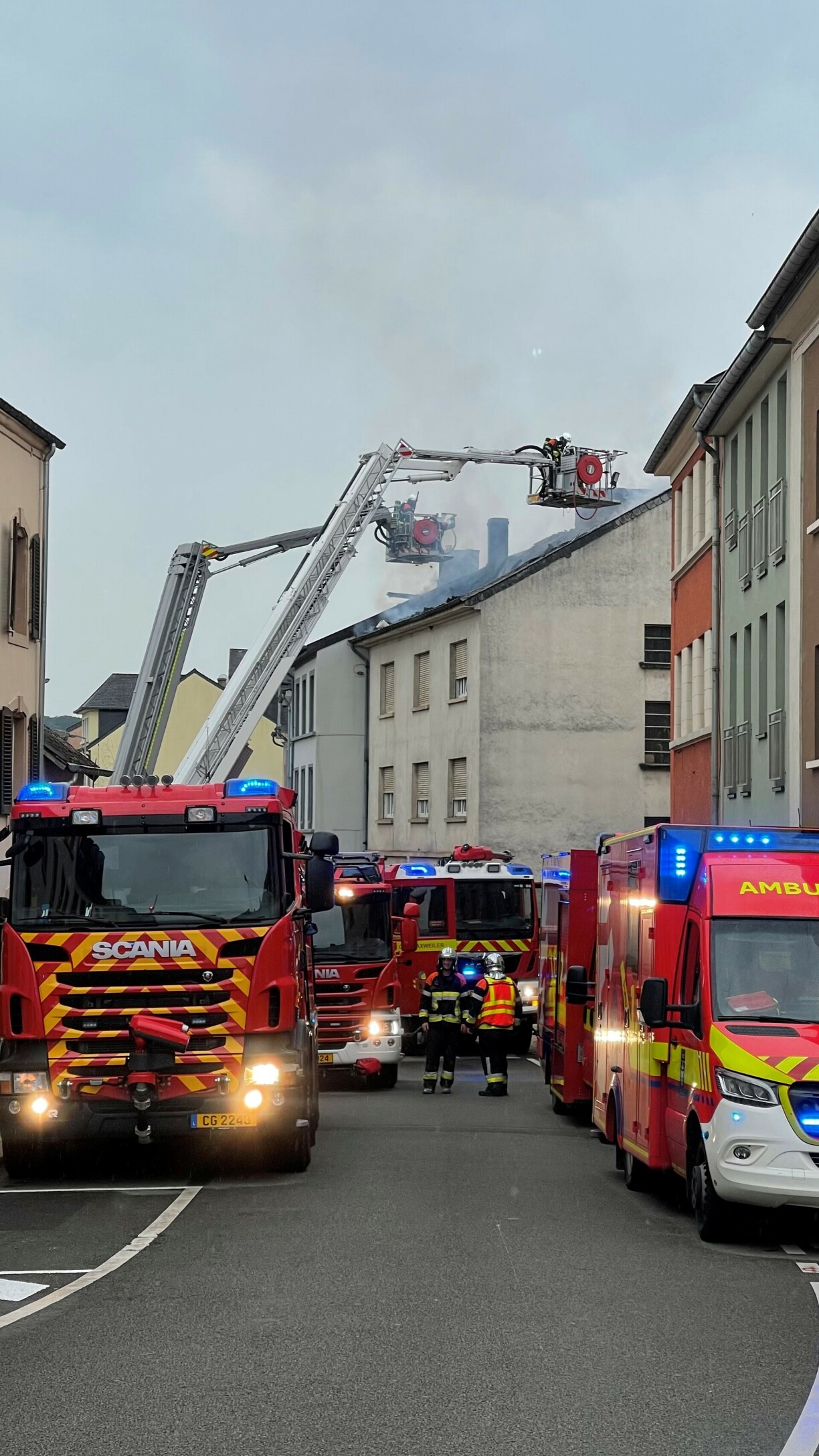 A total of 60 firefighters from Wormeldange, Mertert, Canach, Niederanven, Remich, Flaxweiler, and Junglinster were called to the scene.