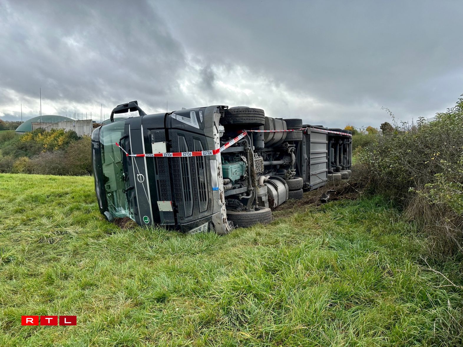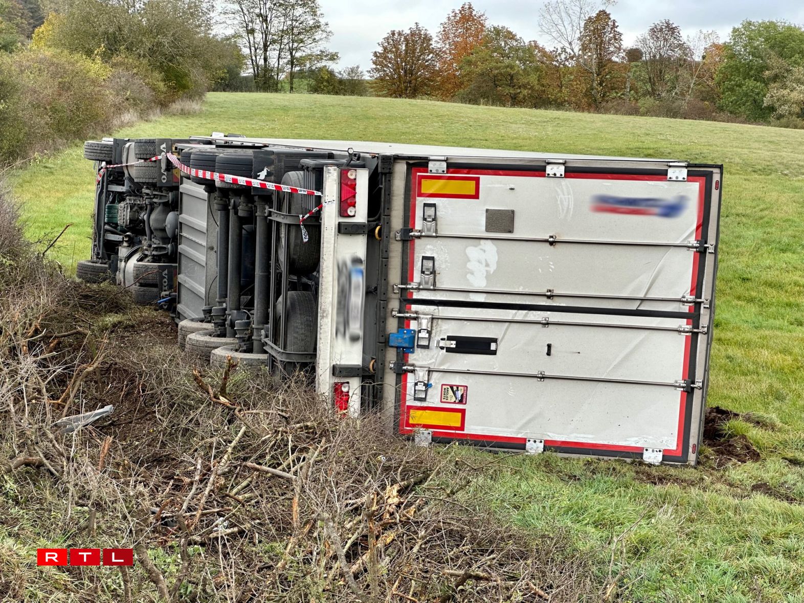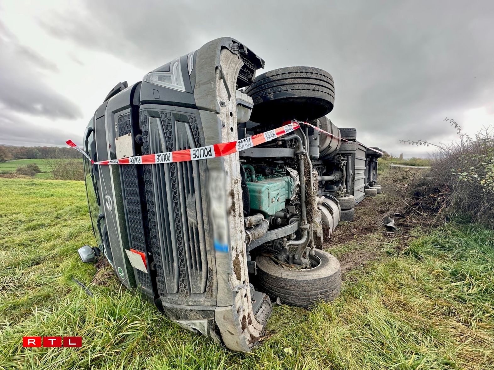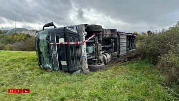 Between Gonderange and EschweilerOne person injured after lorry overturns