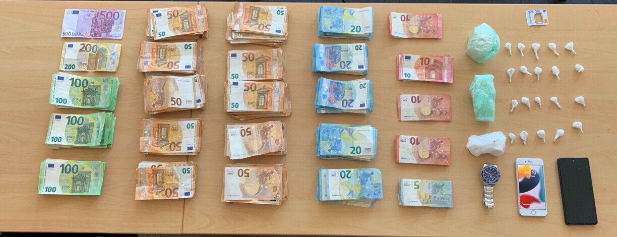 Officers found a used joint, cash money, as well as cocaine at the scene. Both men were arrested by order of the prosector’s office and presented to an examining magistrate. Police confiscated €21,605, a mobile phone, as well as 279 grammes of cocaine.