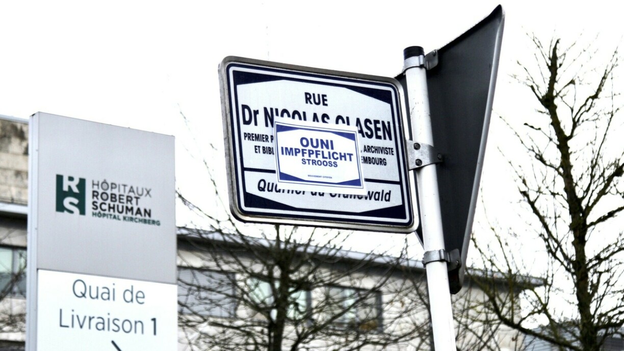 On Thursday morning, a number of signs were spotted in the Grünewald and Kirchberg districts of the capital, renaming streets with messages such as “Ouni Impfpflicht Strooss” - “Street without vaccine mandate”, to paraphrase.