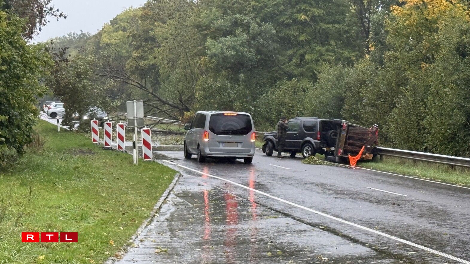 A fallen tree blocked the road between Niederfeulen and Fuussekaul on Saturday, leading to a nearly two-hour complete closure of the stretch.