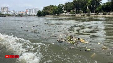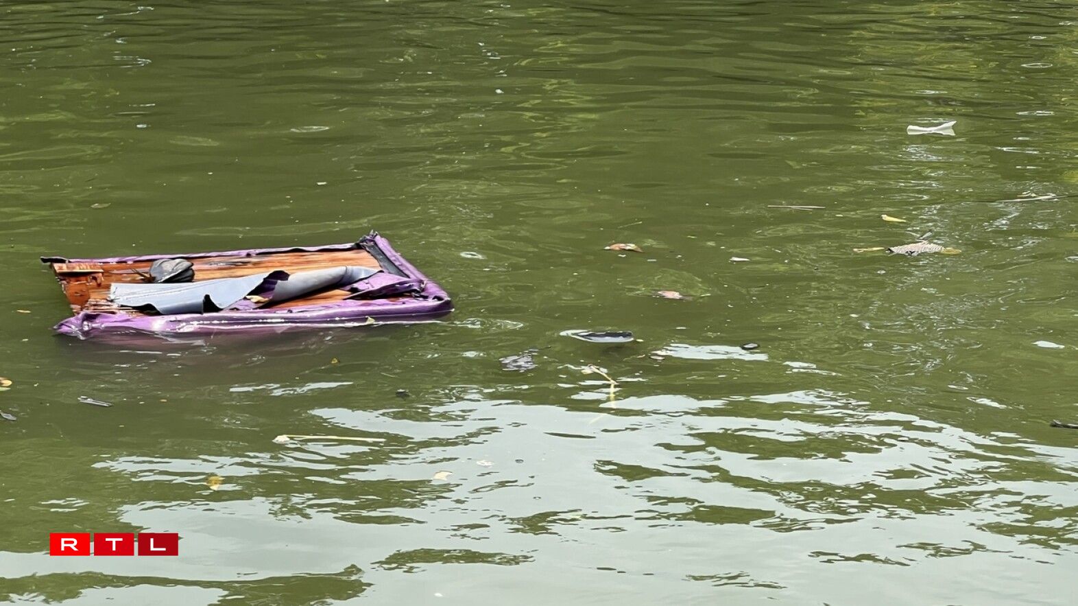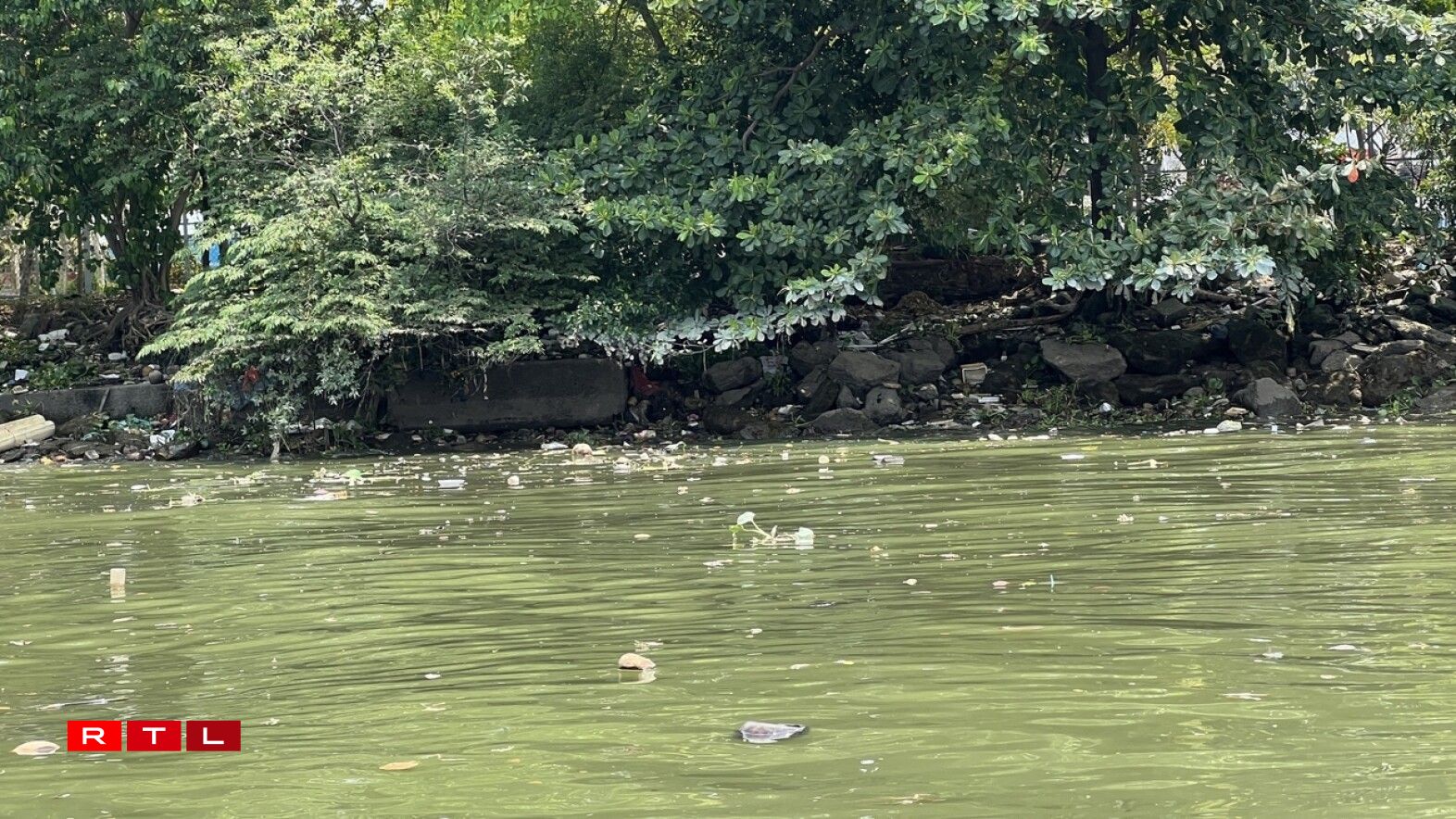 Parts of the problem are visible to the naked eye: plastic bottles, bags, and many unidentifiable objects fill the river.