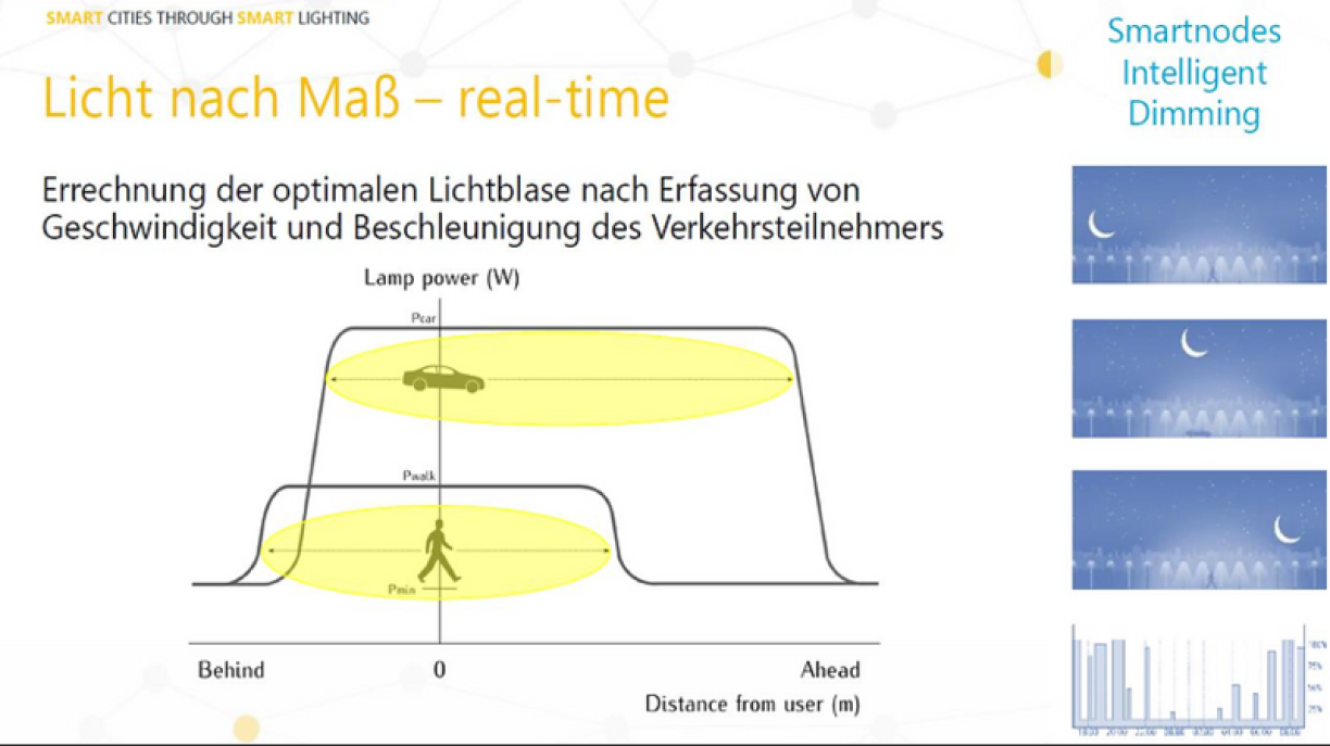 The adjustment of separate lights has advantages for road safety, too: in case of roadworks or an accident, individual lights can be set to full brightness to increase visibility or even draw attention to an incident from afar, says Luc Schmit from WeThink. The smart system can also collect movement data, so municipalities automatically get information on nighttime traffic.