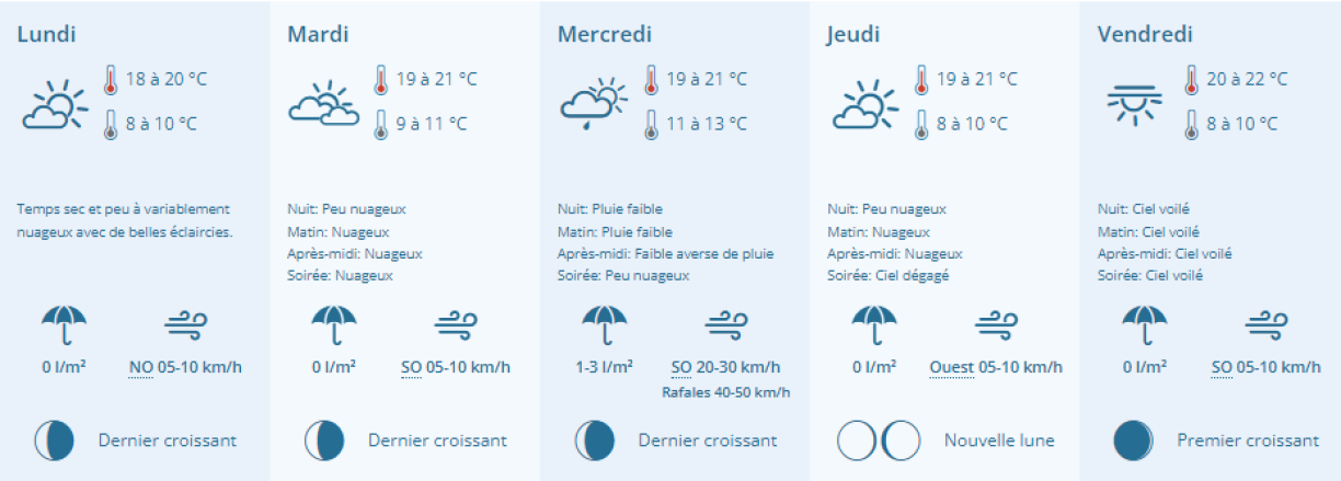 Temperatures will remain mild for this time of year, not exceeding 22°C during the day and dropping to 8°C on some mornings. In short, it might not be summer yet, but the weather is improving, which is at the very least good for morale!