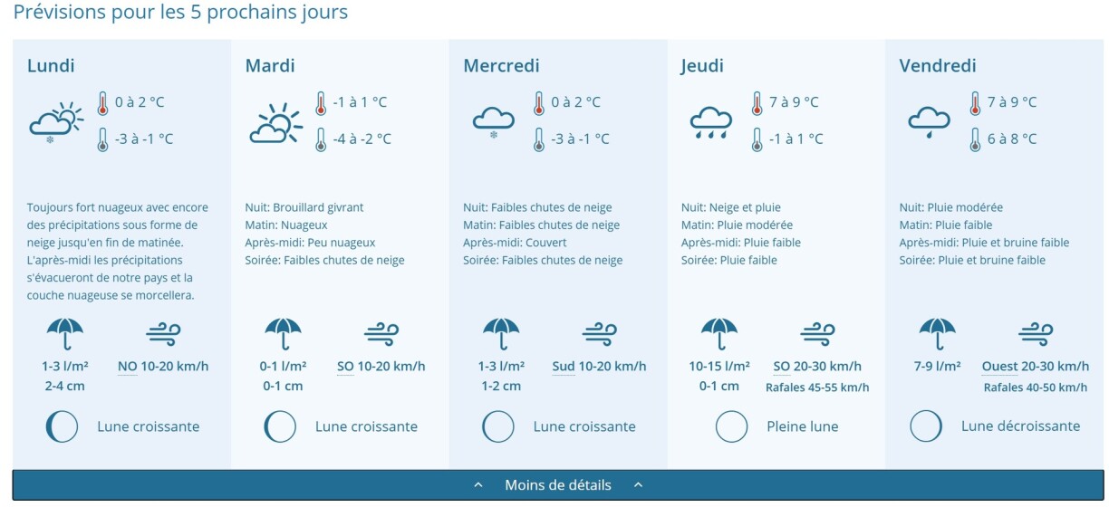 For the next few days, the weather will remain wintry, with snowfall on certain days and negative temperatures.