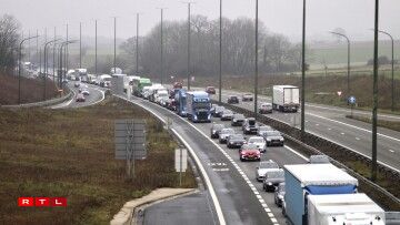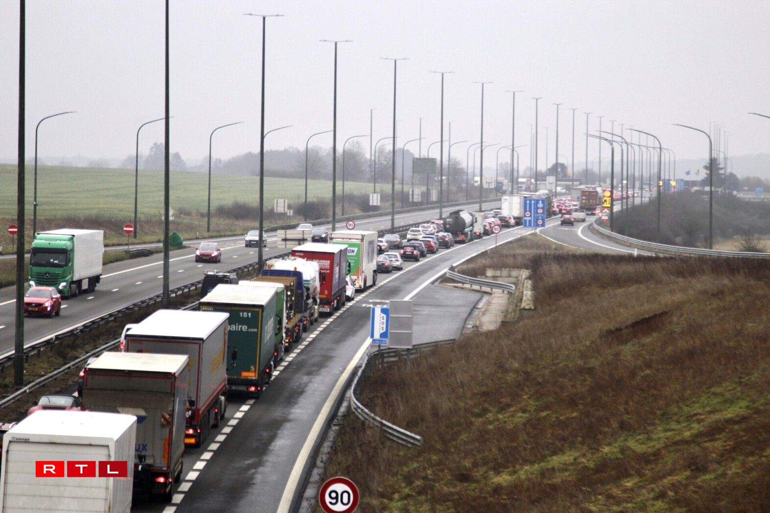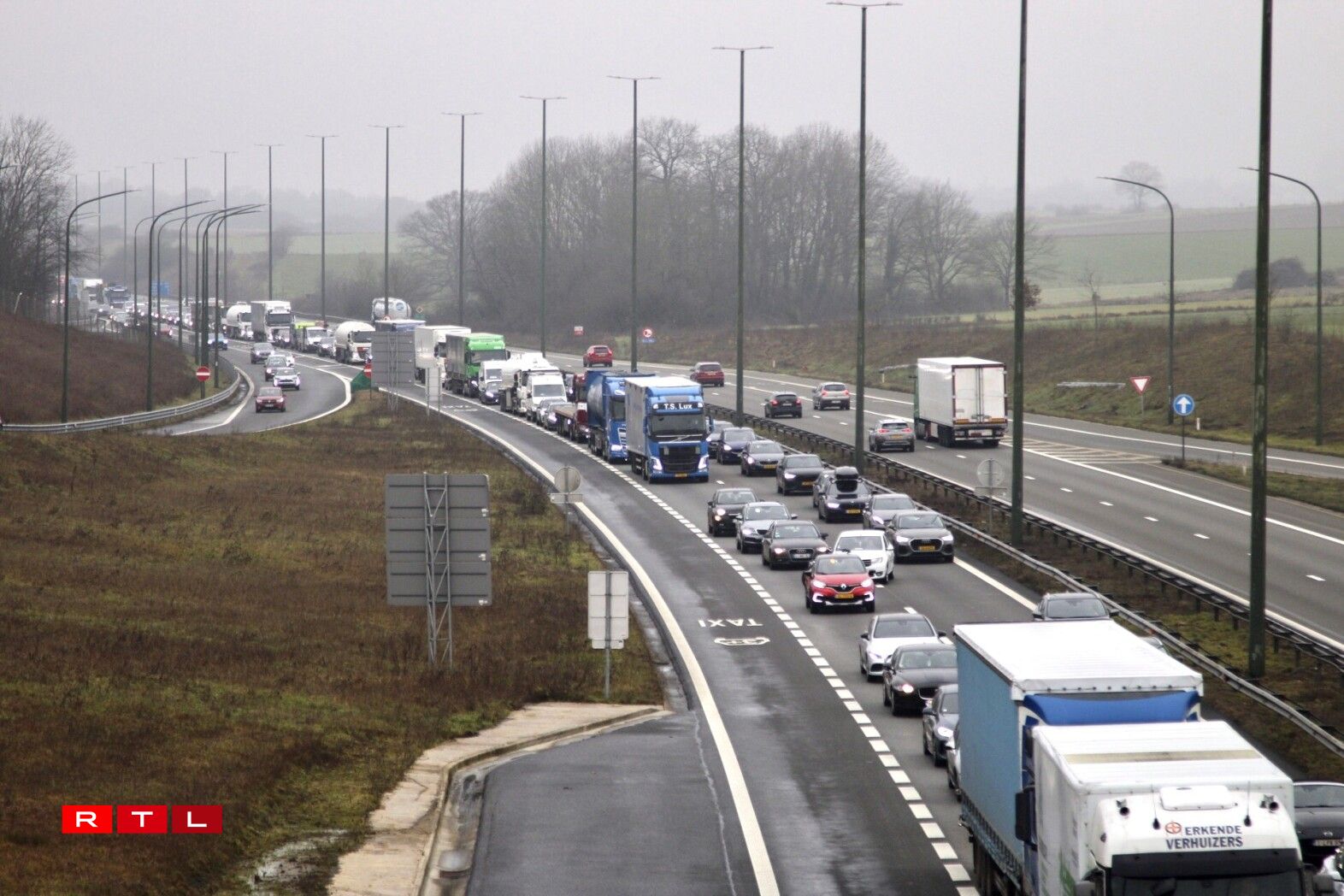 Two of the three lanes were closed to traffic on the Belgian side before being cleared shortly after 11.30 am.