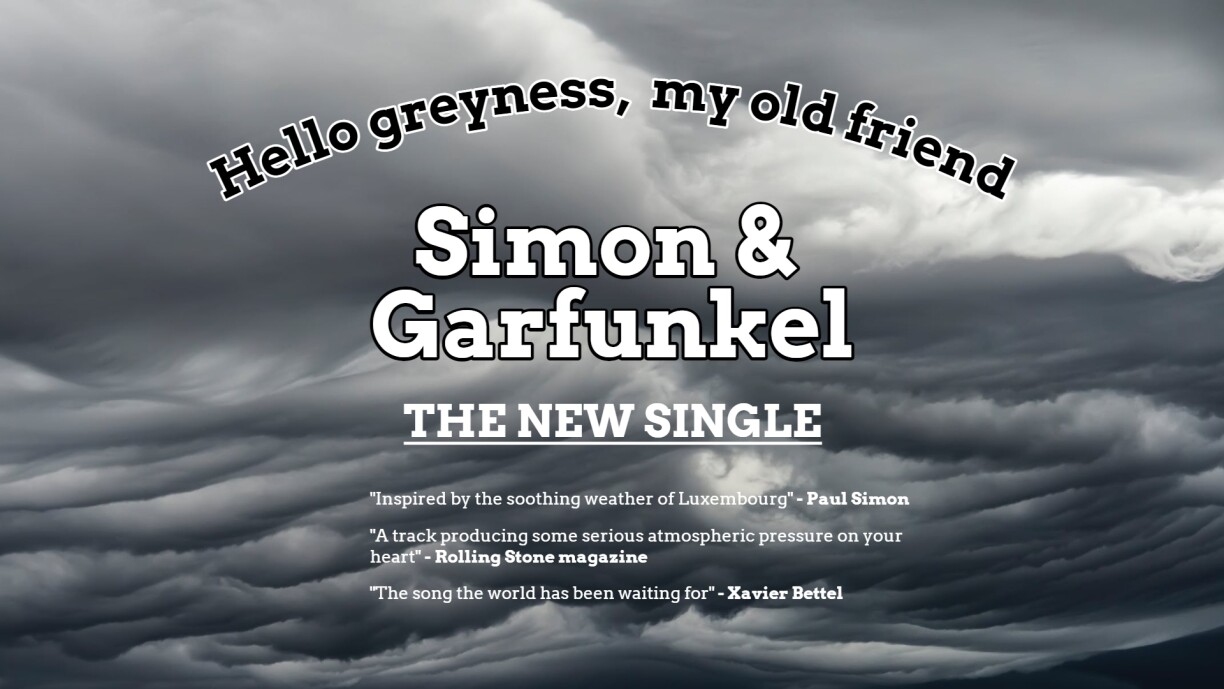 Not sure Simon & Garfunkel would’ve felt inspired by the Grand Duchy’s ‘grand’ meteorological variety, but at least it’s unmistakably Luxembourgish. Anyone know what the lyrics would be like?