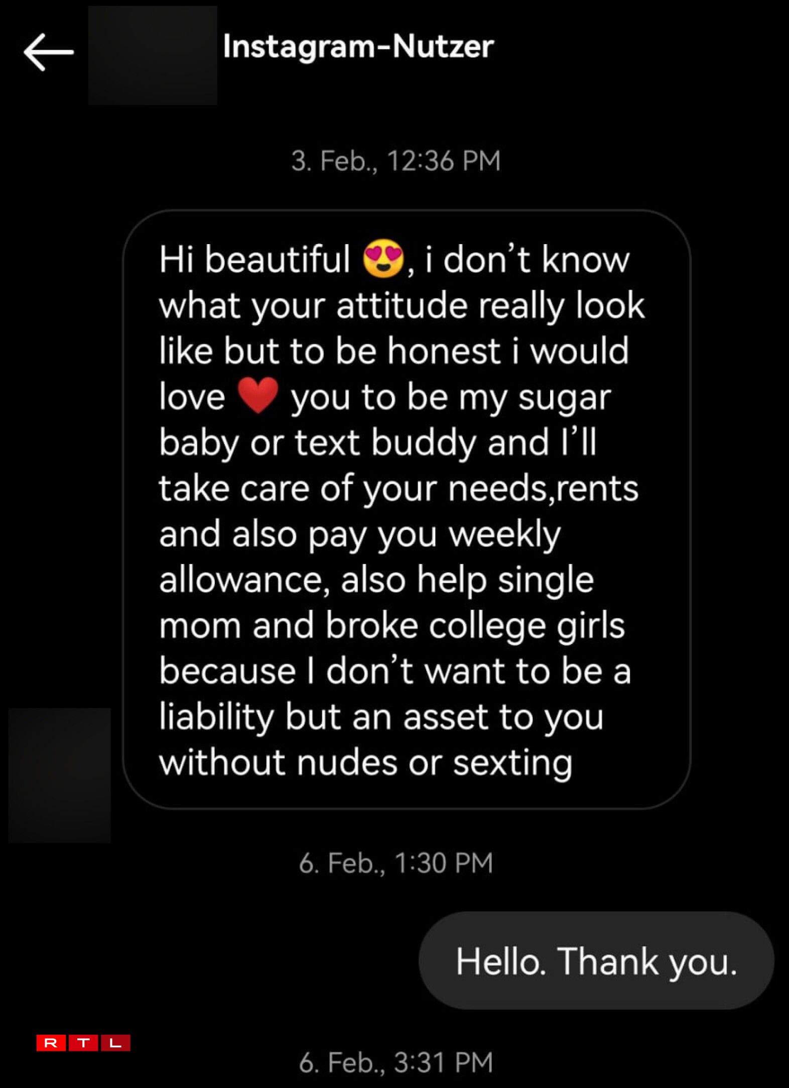 RTL interviewed a young woman from Luxembourg who almost fell victim to a fake sugar daddy scam on Instagram.