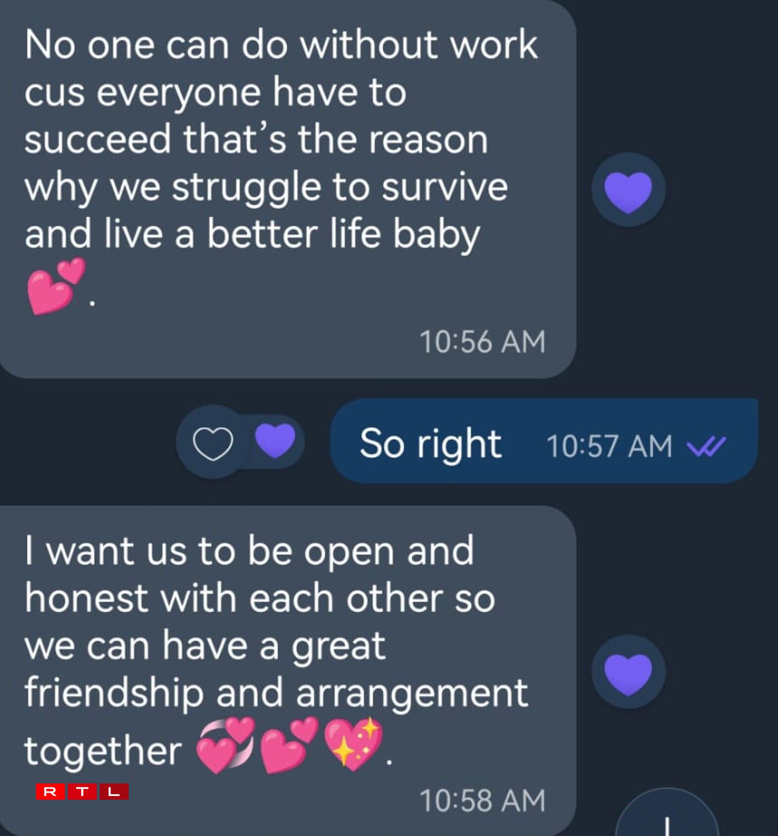 Soon, the conversation turned to sugar daddies, with Henri asking Anouk if she had experience with being a sugar baby. When Anouk replied she had not, Henri explained the system, emphasising that it was important to him that Anouk did not enter into an agreement with any other sugar daddies, and asked her to always be truthful with him. The latter message was repeated throughout the discussion.