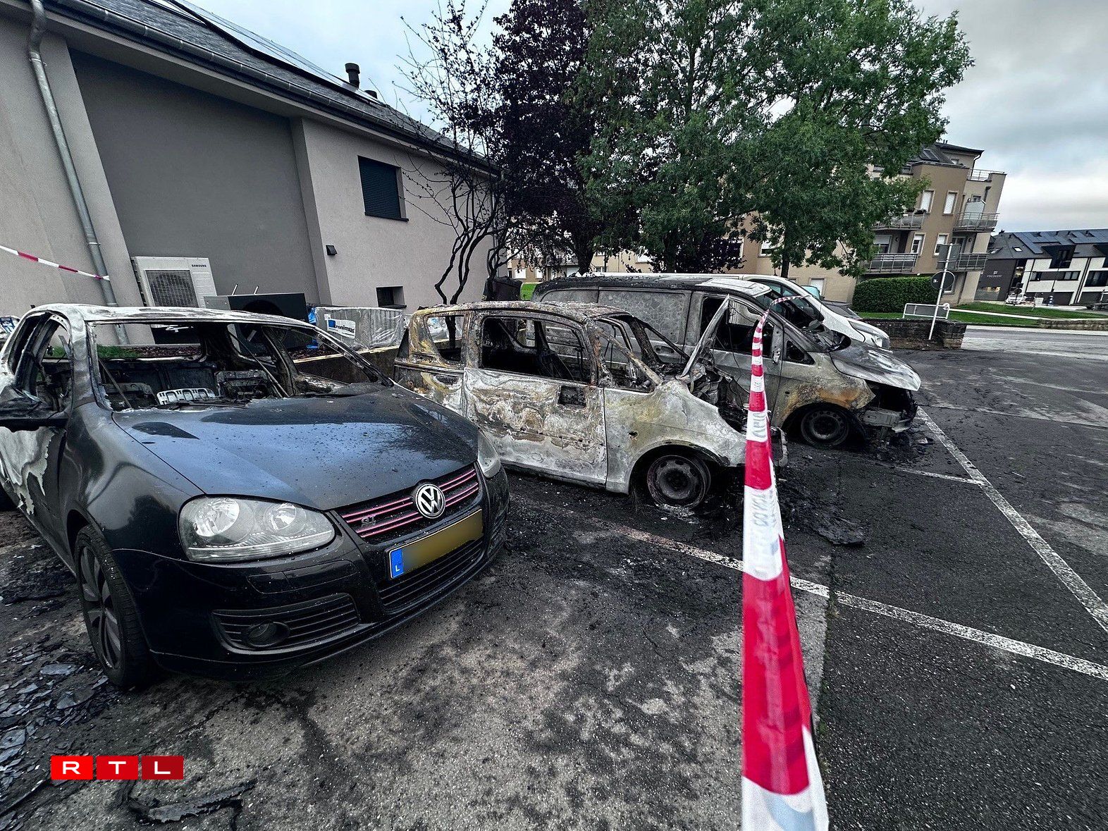 Early Tuesday morning, a suspected arson attack destroyed multiple vehicles in a public car park in Bascharage.